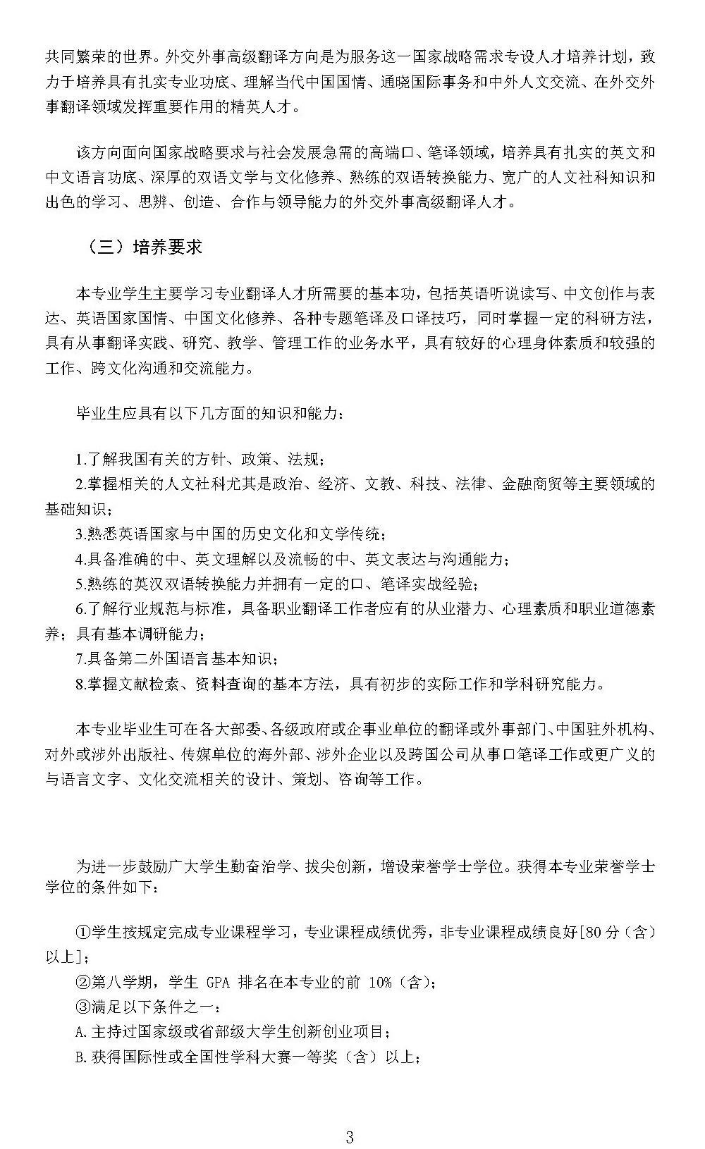 yl23455永利集团翻译(外交外事高级翻译)专业本科培养方案(2024)
