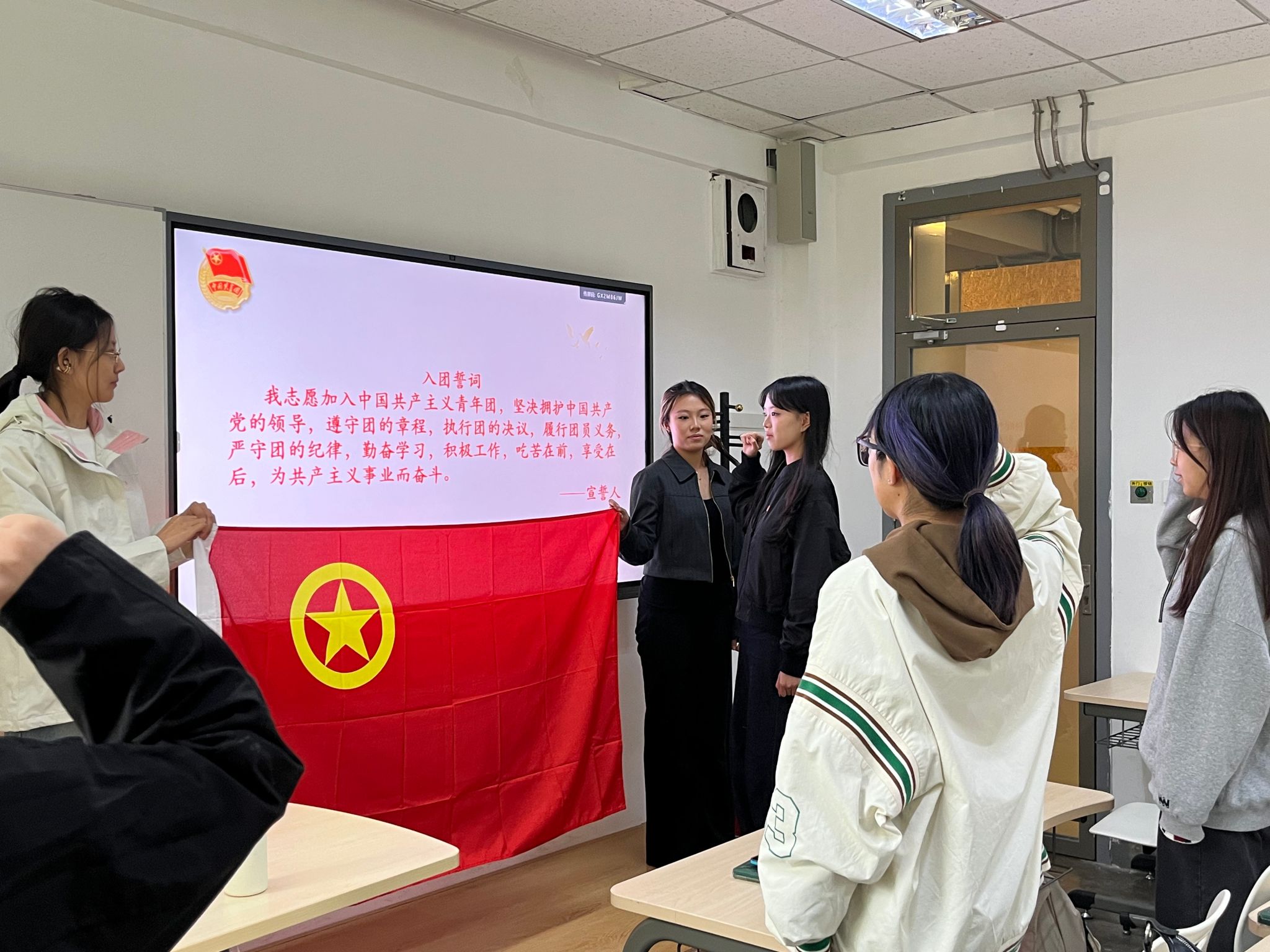 活动最后,全体团员面向团旗,庄严重温入团誓词,用铿锵誓言表达坚定不移跟党走、为民族复兴贡献青春力量的决心。