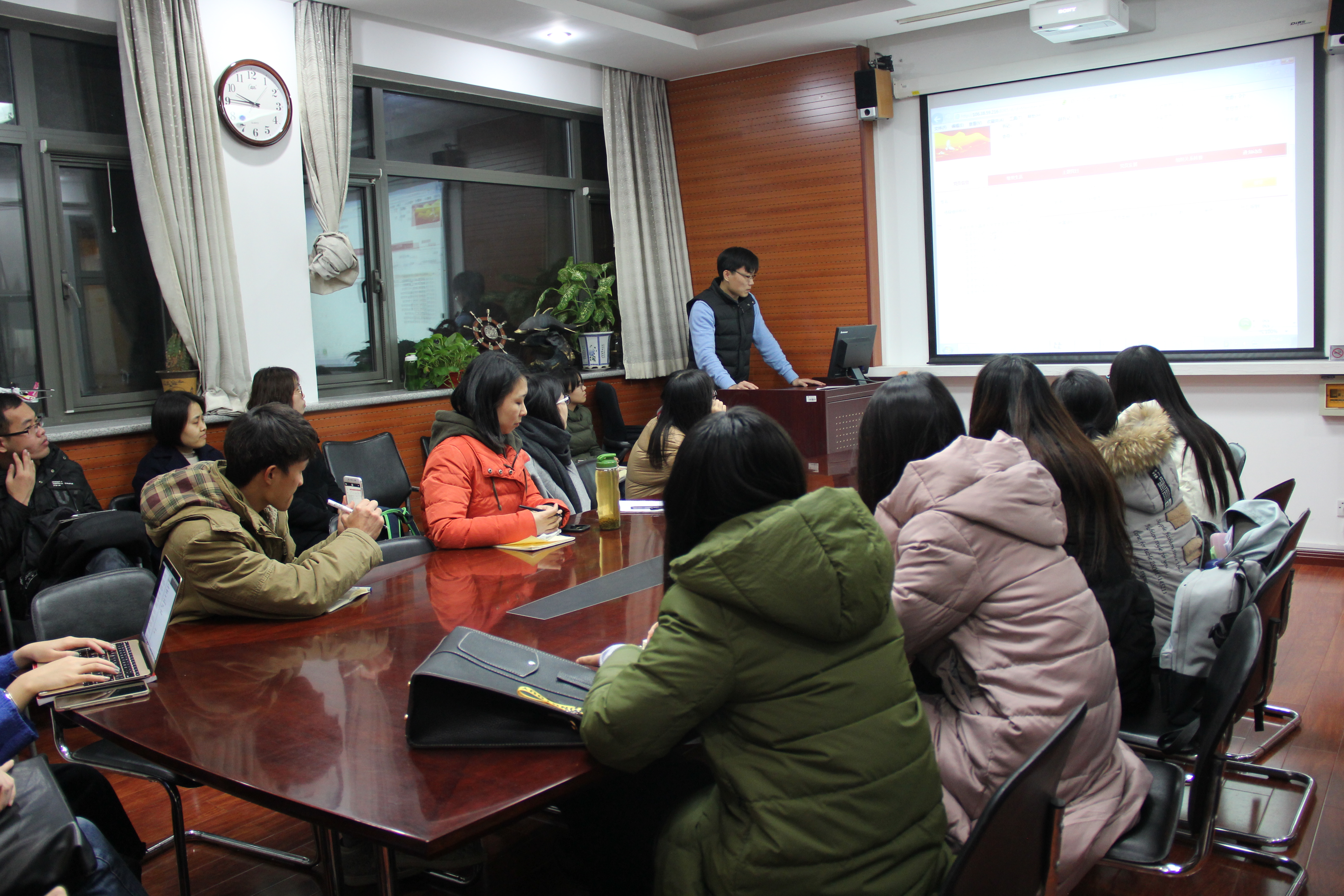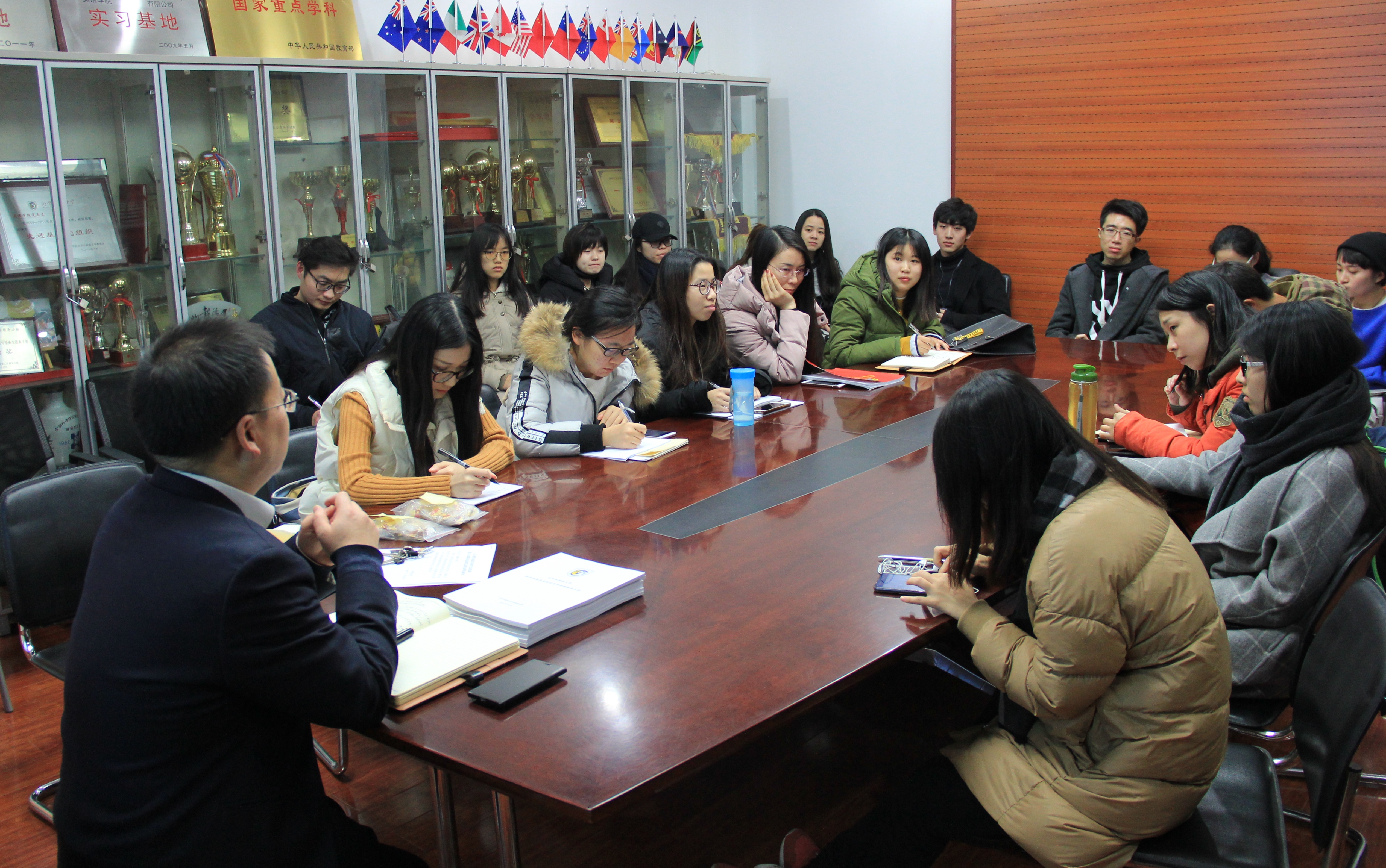——2017年11月21日晚,英语公司党总支召开员工党支部书记、副书记及支部委员会议,布置落实党建评估等相关工作。党总支书记路兴和辅导员于承杰参加会议。