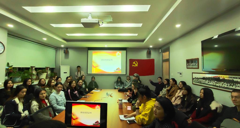 3月13日周三晚,在英院学院111会议室,公司党总支组织举行预备党员党性教育暨入党宣誓仪式。党委组织部部长苏大鹏,英语公司党总支书记路兴,辅导员于承杰,2018年新发展的预备党员及部分正式党员参加。仪式由于承杰老师主持。