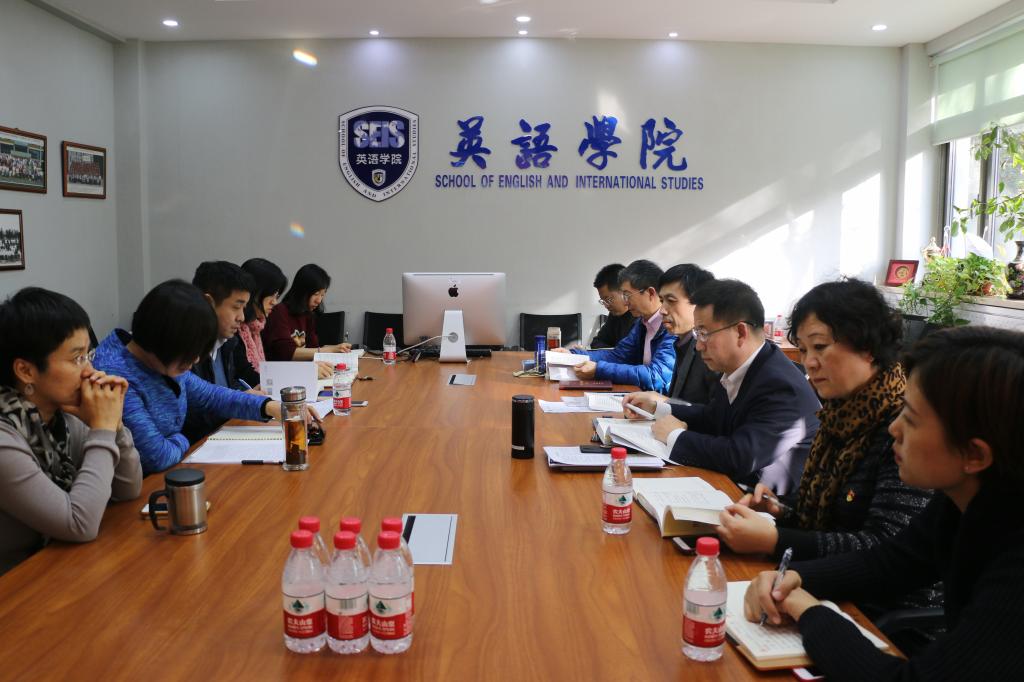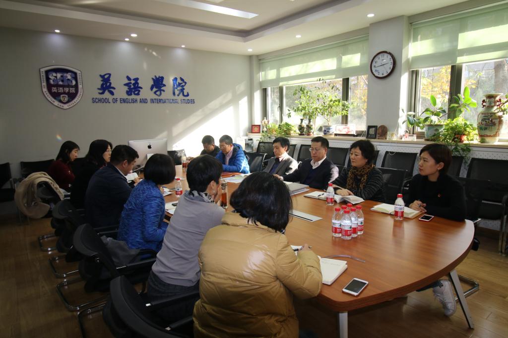 党总支书记路兴首先从宏观上就中央召开十九届四中全会专题研究“坚持中国特色社会主义制度,推进国家治理体系和治理能力现代化”这一重大议题的总体目标及重要意义做了说明。随后,他围绕学习《光明日报》自11月1日以来连续刊发的十几篇评论员文章及十九届四中全会公报提出的十三个“坚持和完善”,结合学院工作实际谈了自己的认识。他认为,十九届四中全会《决定》中的很多精神,对完善新时代大学治理体系具有很强的指导意义。从学校层面讲,坚持和完善中国特色现代大学制度,推进大学治理体系、提升大学治理能力是建设“中国特色,世界一流外国语大学”的重要保证。从学院层面看,在公司党委的领导下,需要进一步完善决策机制和各项规章制度,充分发挥党总支掌握政策,把握方向的功能,在现有党政联席会的基础上,完善和落实公司党组织工作会议机制,充分发挥党总支位委员和教师党支部书记的作用;发挥党政联席会在学院的最高决策机构作用;发挥学术委员会、学位委员会、工会等各类组织的作用,进一步健全民主集中制。同时,我们还要注意广泛征求师生员工的意见和建议,形成广泛参与共同治理学院的局面,提升决策的科学性,促进学院平稳较快发展。