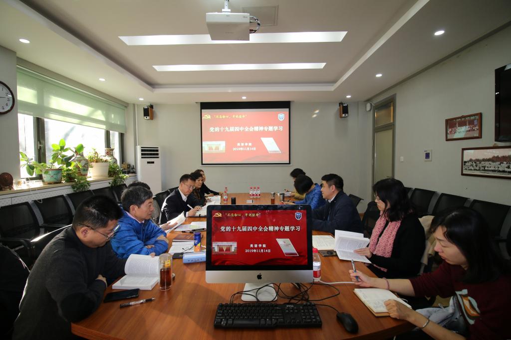 11月14日下午,yl23455永利集团理论中心组召开党的十九届四中全会精神专题学习讨论会,交流分享学习党的十九届四中全会精神的认识和体会。学院班子全体成员、党总支委员和教工党支部书记参加学习研讨。会议由党总支书记路兴主持。参会人员会前结合实际研读了公司党委下发的《党的十九届四中全会<决定>学习辅导百问》。