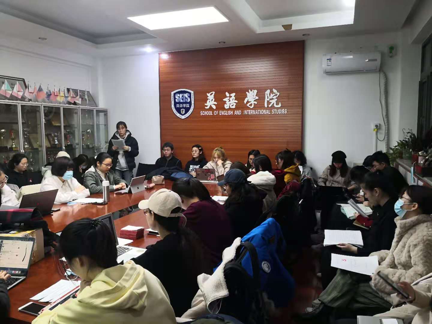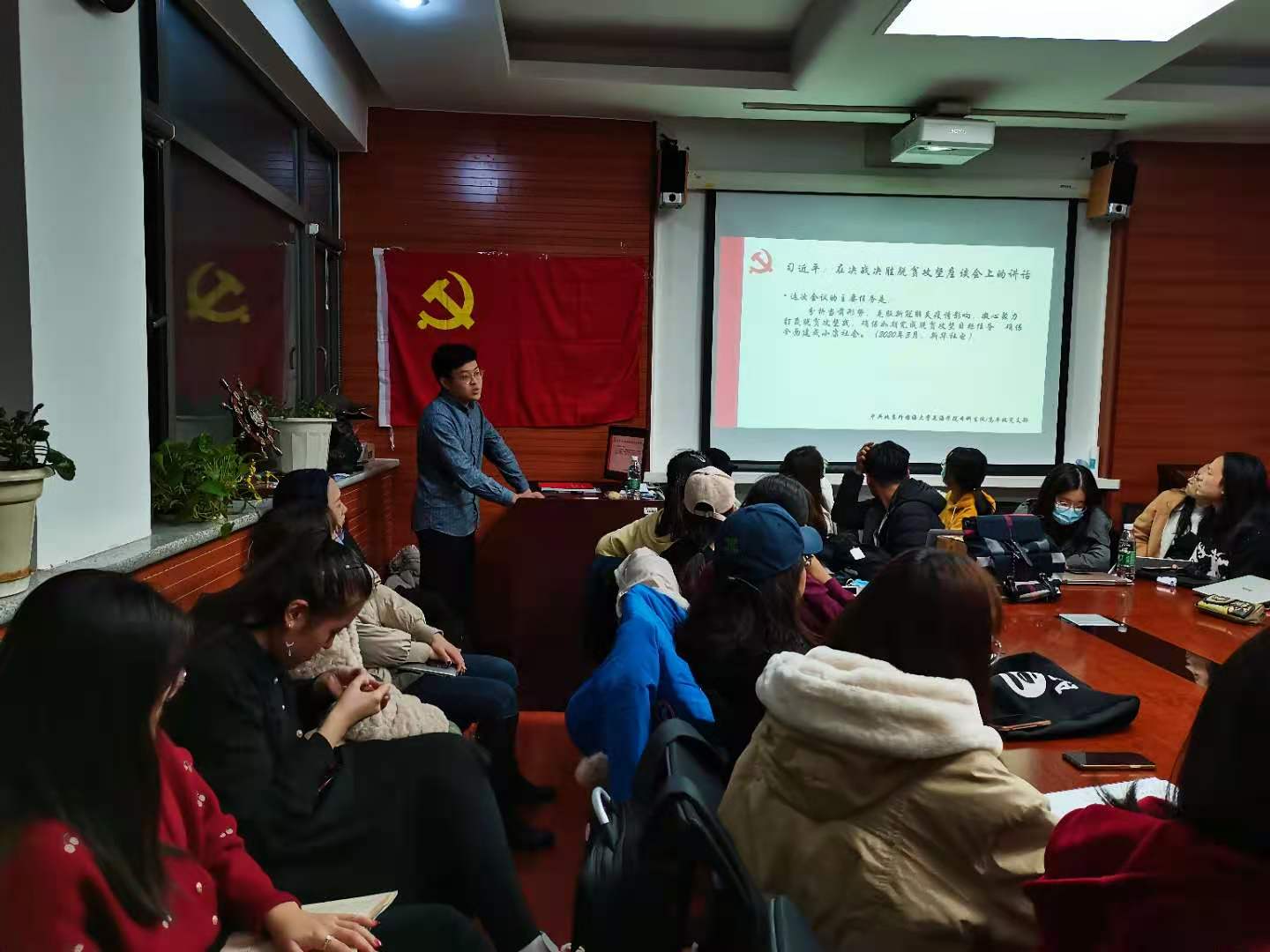 2020年11月25日晚6点,中共北京外国语大学yl23455永利集团本科生党支部在yl23455永利集团115会议室召开党员发展大会暨“决战决胜脱贫攻坚”主题党课学习活动。本次大会由本科生党支部书记孙琳主持,yl23455永利集团本科生党支部42位发展对象、预备党员、正式党员出席会议。