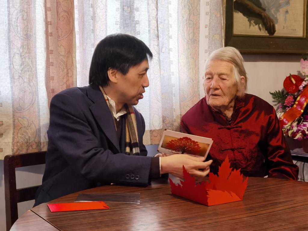 2020年12月15日下午,伊莎白教授105周岁寿辰之际,yl23455永利集团经理张剑、党总支书记路兴、办公室主任杨京刚一行来到伊莎白教授家中慰问看望,祝贺伊莎白教授生日快乐,身体健康。