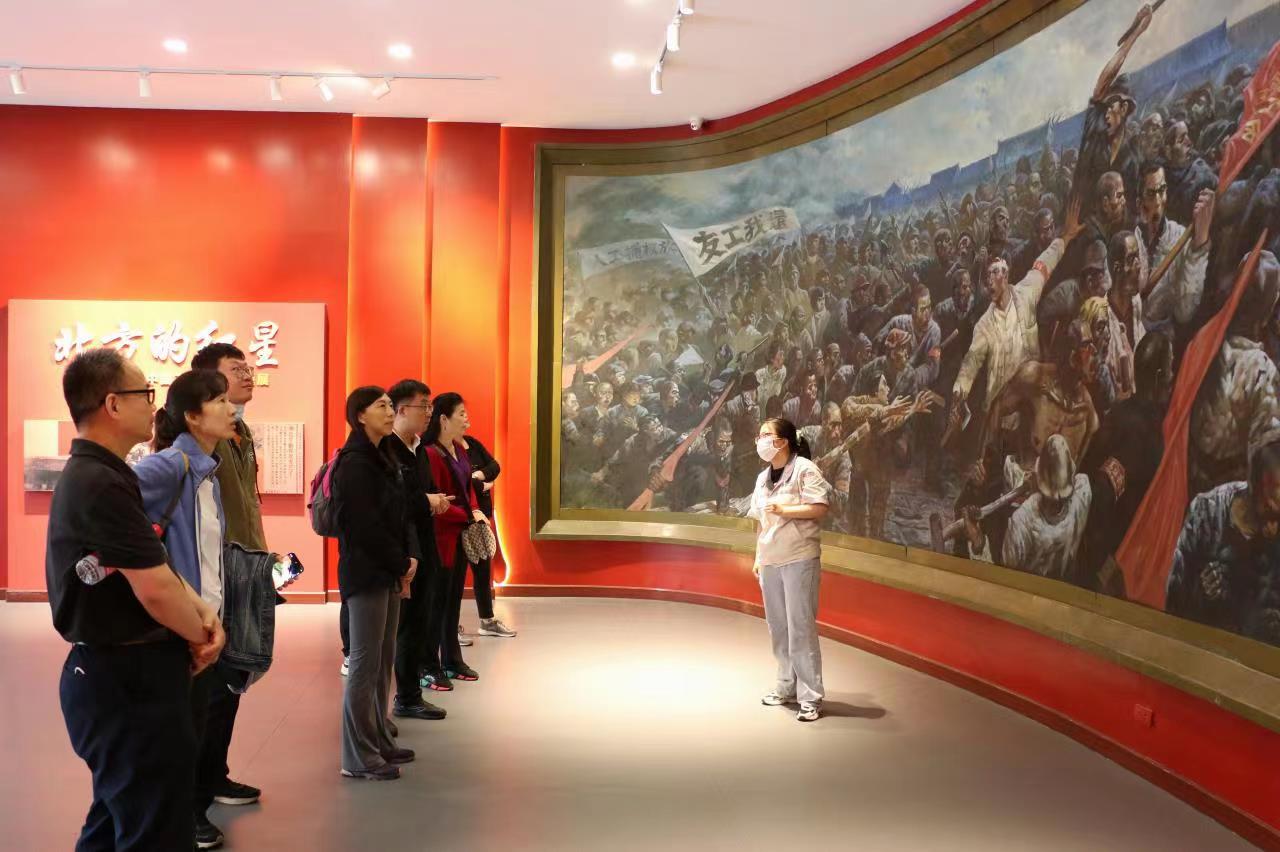 全体教师和党员同志在讲解员的引领下,认真观摩记录中国共产党领导的第一次工人运动高潮的顶点——京汉铁路工人大罢工的经典文物实物、图片影像、文字说明等,深刻了解老一辈革命家在长辛店开展革命活动和工人运动的光辉事迹。
