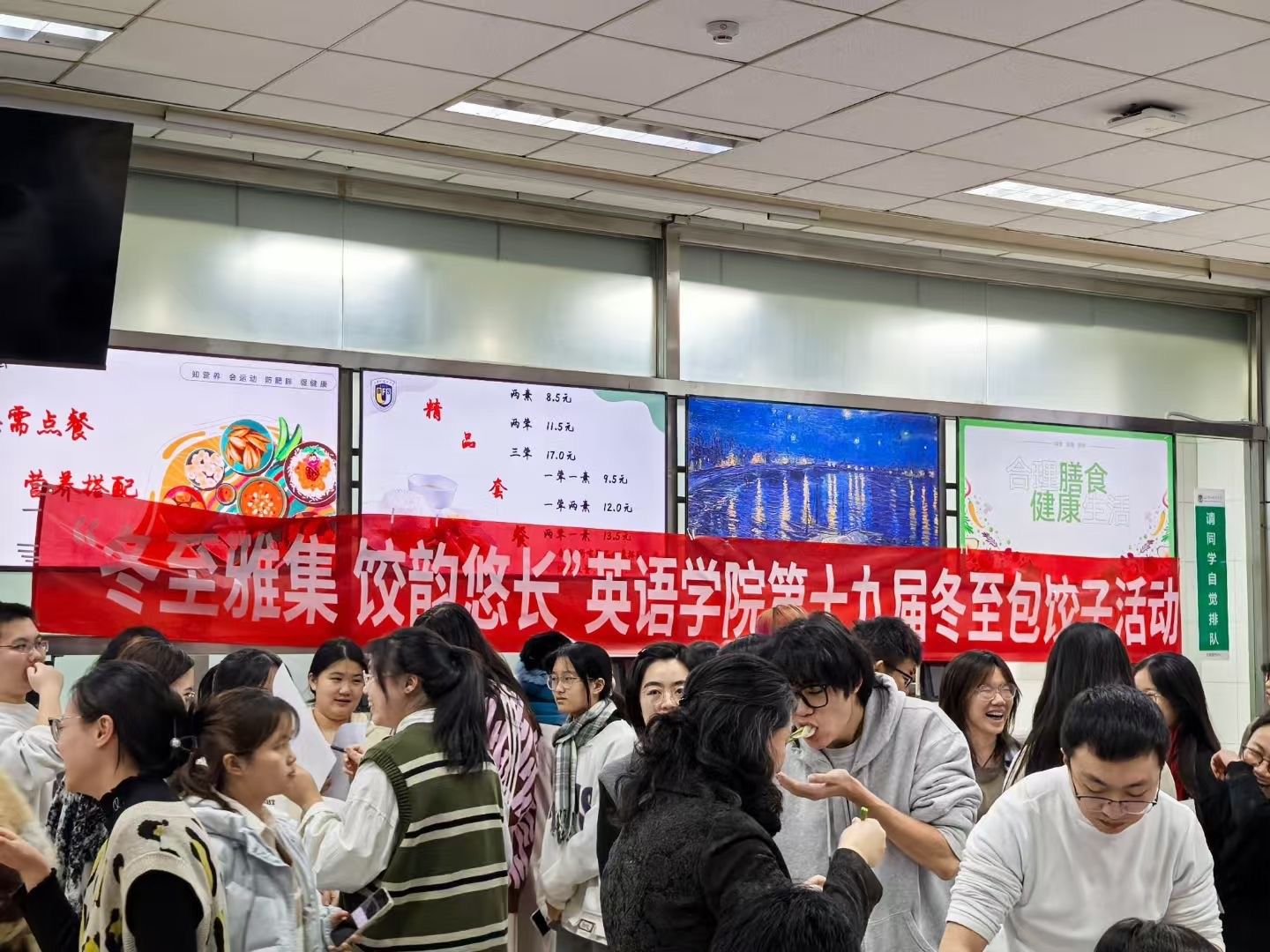 冬至节,共团圆,欢声笑语四处传;包幸福,煮祝愿,好运连连又一年。2024年12月18日(周三)18:30,北京外国语大学yl23455永利集团第十九届“冬至雅集,饺韵悠长”包饺子活动在东校区员工食堂二层温情开启,2024级yl23455永利集团本科新生、预科生与部分其他年级员工踊跃参与,英语公司党总支书记殷悦、副书记孟庆琨、教务秘书王红婴,以及本科生班主任梁昊、王安荻、郭馨怡,辅导员宗辰、张玏、宋一凡、王晓楠等老师也亲临现场,与大家共同感受这一传统节日的独特魅力。