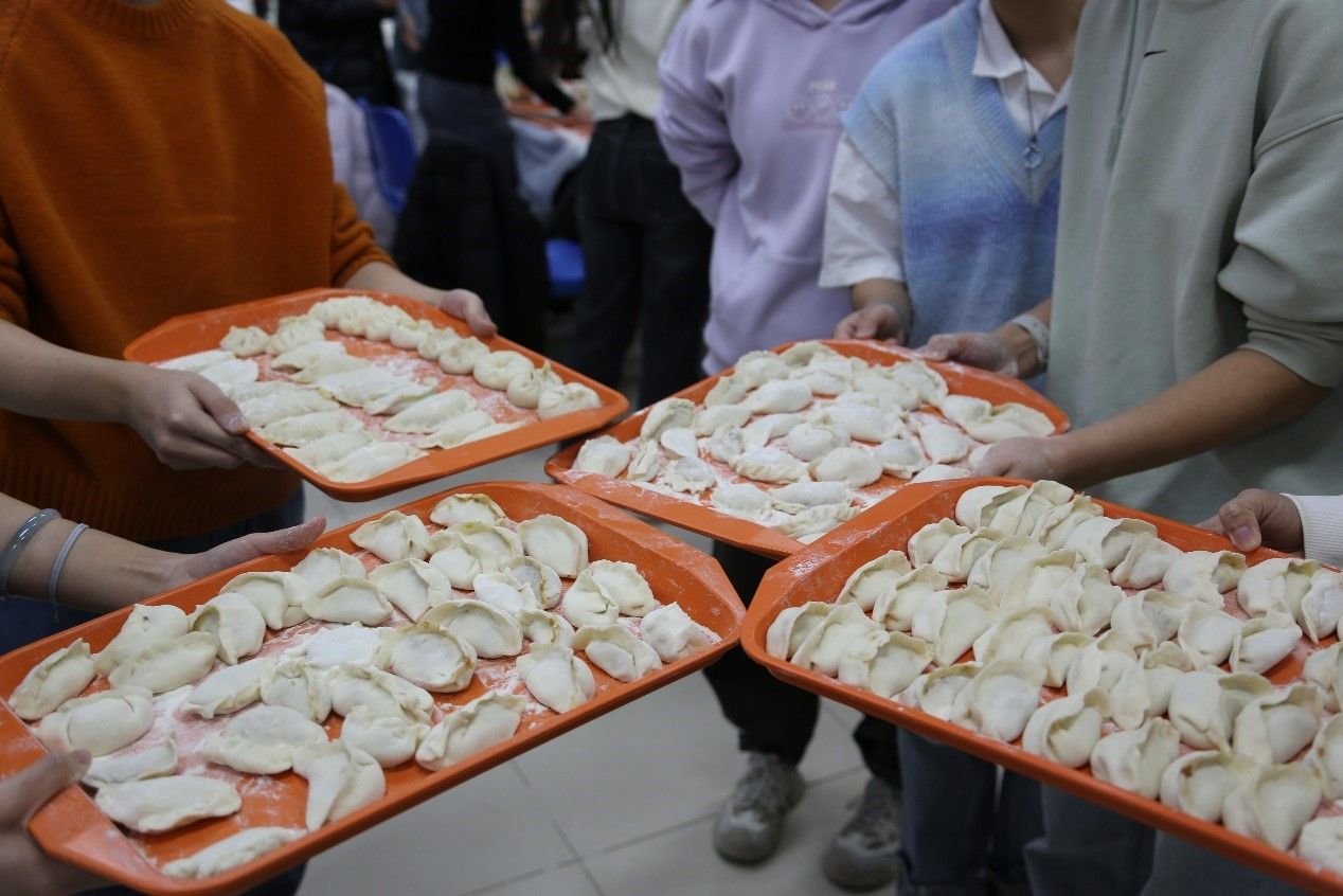 随着热气腾腾的饺子出锅,同学们围坐在一起,品尝着自己的劳动成果。热乎乎的饺子在寒冷的冬夜里格外温暖,大家边吃边聊,在欢声笑语中感受传统节日的魅力,也相互祝福着明年有一整年的好福气。