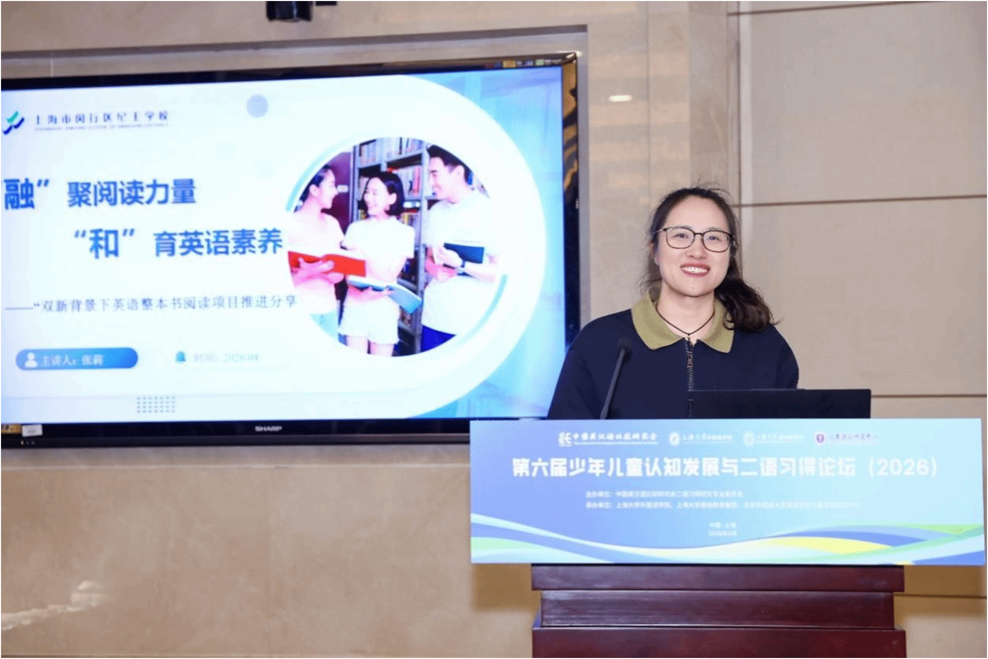 第六场主旨报告由上海大学外国语学院英语系主任马拯副教授主持。上海市闵行区纪王学校张莉副董事长以“‘融’聚阅读力量,‘和’育英语素养”为题,分享了学校全学段英语整书阅读项目实践经验。她从课程教学、校园活动、教师发展、综合评价四大维度,展示了如何通过多维度融合实践,让整书阅读融入校园生活方方面面,提升员工英语核心素养,并表示,将进一步深化理论学习应用、加强推广与分享、推动创新与发展。