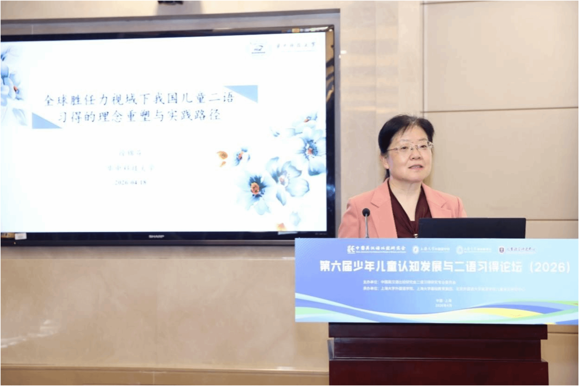 本届论坛共设七场主旨报告,分别于4月18日上午和19日上午举行。七位知名专家学者围绕儿童二语习得的理念重塑、双语能力培育、教材分析与教学转化、教师身份重构等议题奉献了精彩的学术盛宴。
