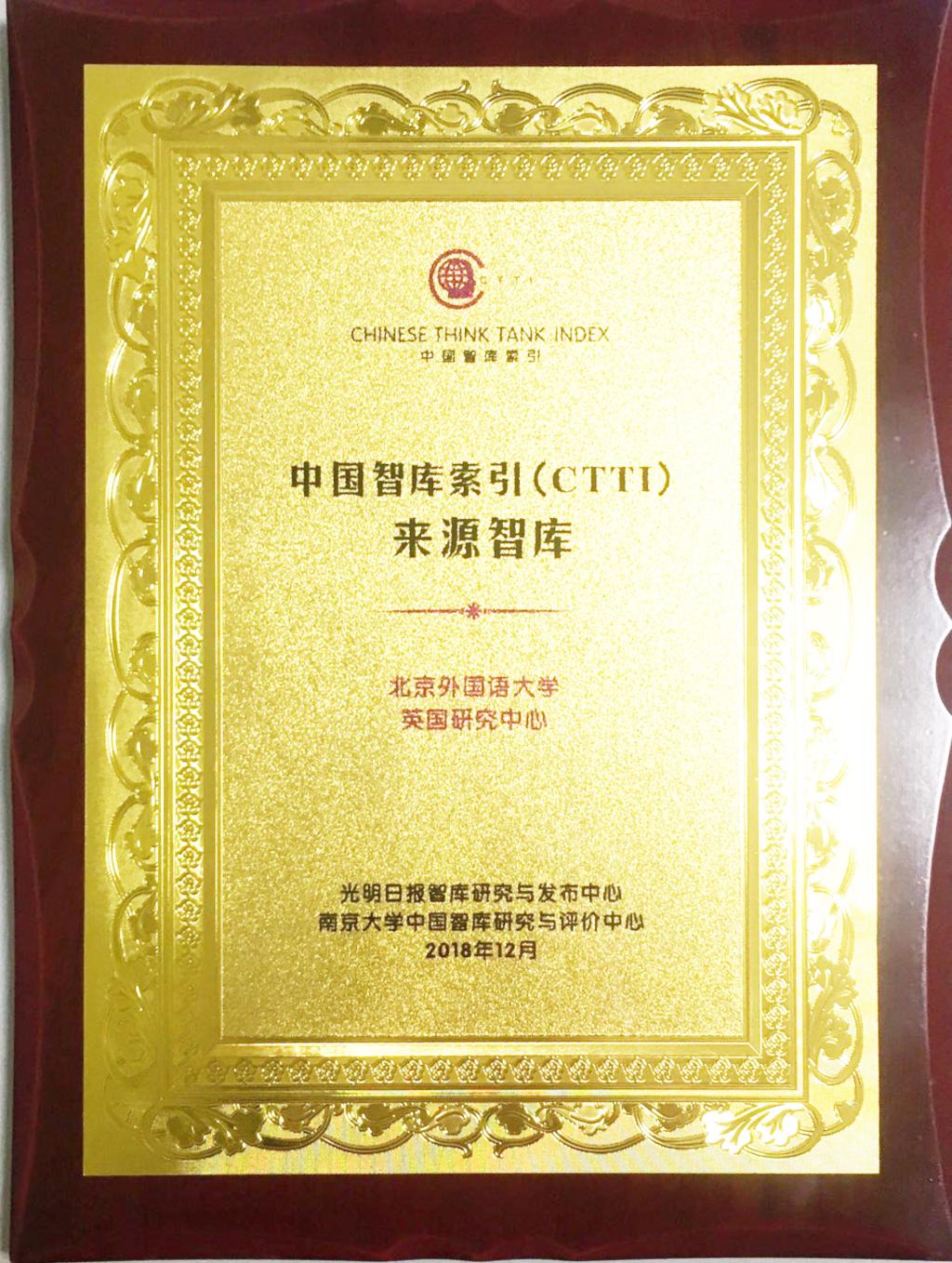 12月22日,由南京大学、光明日报社联合主办,南京大学中国智库研究与评价中心、光明日报智库研究与发布中心承办的“2018中国智库治理暨思想理论传播高峰论坛”在南京举行。北京外国语大学英国研究中心增补入选2018年CTTI来源智库。