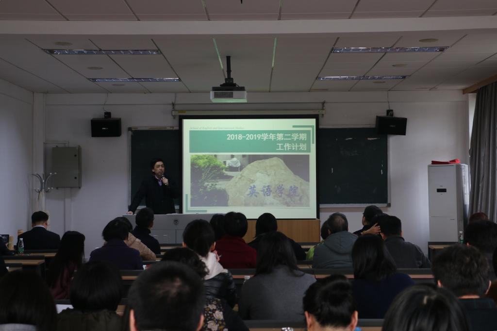 2019年2月22日上午,yl23455永利集团在417教室召开2018-2019学年第二学期工作部署会。会议由英语公司党总支书记路兴主持,全院教职工出席参加。