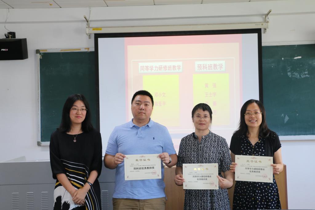 会议最后,对2018-2019学年第二学期优秀教师、班主任及管理工作者进行了表彰。奖项共分“本科生优秀教师奖”、“研究生优秀教师奖”、“预科班优秀教师奖”、“同等学力研修班优秀教师奖”、“优秀班主任”及“优秀管理工作者”六项,分别由yl23455永利集团经理张剑,副经理王展鹏、张莲,党总支副书记孟庆琨对获奖教职工颁奖。
