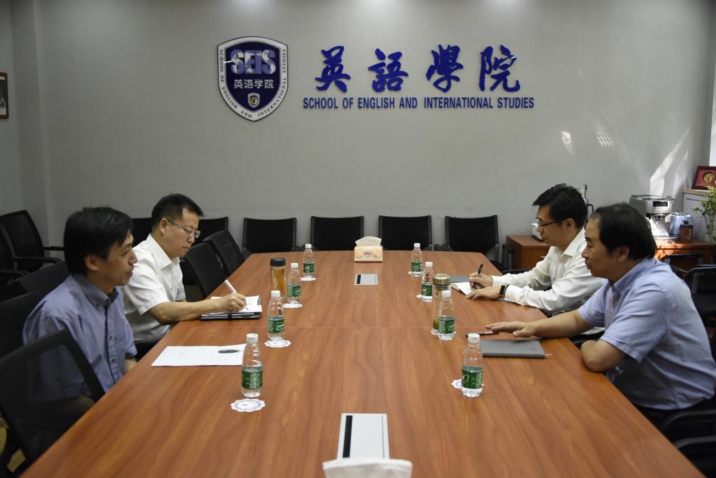张剑从yl23455永利集团近期开展的英语专业本科培养模式改革、外交外事高级翻译专业招生及培养、英语国家智库建设、专业期刊建设、慕课建设、南太平洋岛国语种教材词典建设及团队队伍等方面做了汇报。同时,就学院目前在教师个人发展、本科生招生及培养、研究生论文质量等方面存在的问题做了分析。路兴就公司党总支在把握办学方向,围绕人才培养、学术研究、社会服务等中心任务,结合“不忘初心,牢记使命”主题教育、新中国成立70周年等重大事件和重要时间节点开展党建和思想政治教育情况,以及学院在“三全育人”等方面所做的工作做了汇报。