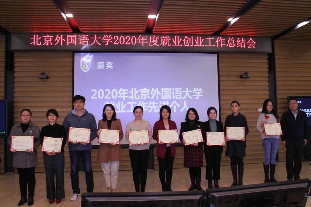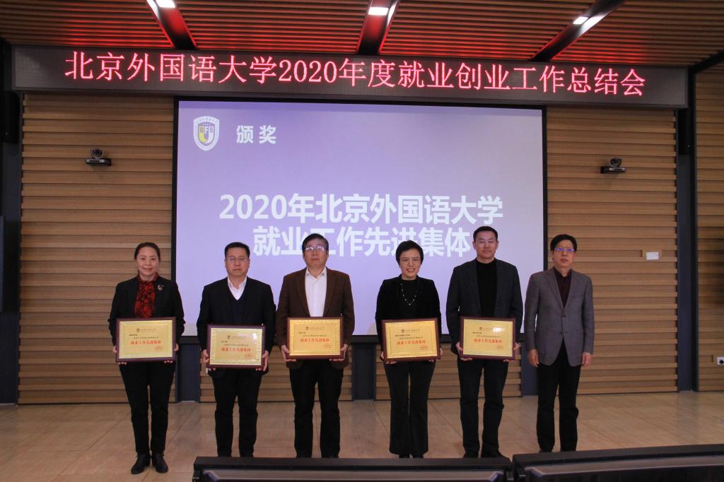 2020年12月23日,公司召开2020年度就业创业工作总结会,yl23455永利集团荣获2020年北京外国语大学就业创业工作先进集体,党总支书记路兴代表yl23455永利集团就业工作小组上台领奖。辅导员于承杰荣获“2020年北京外国语大学就业工作先进个人”。