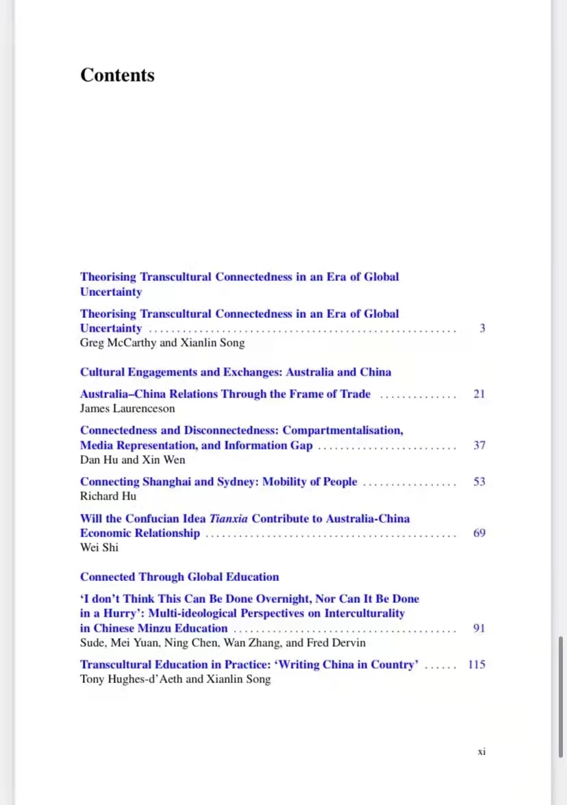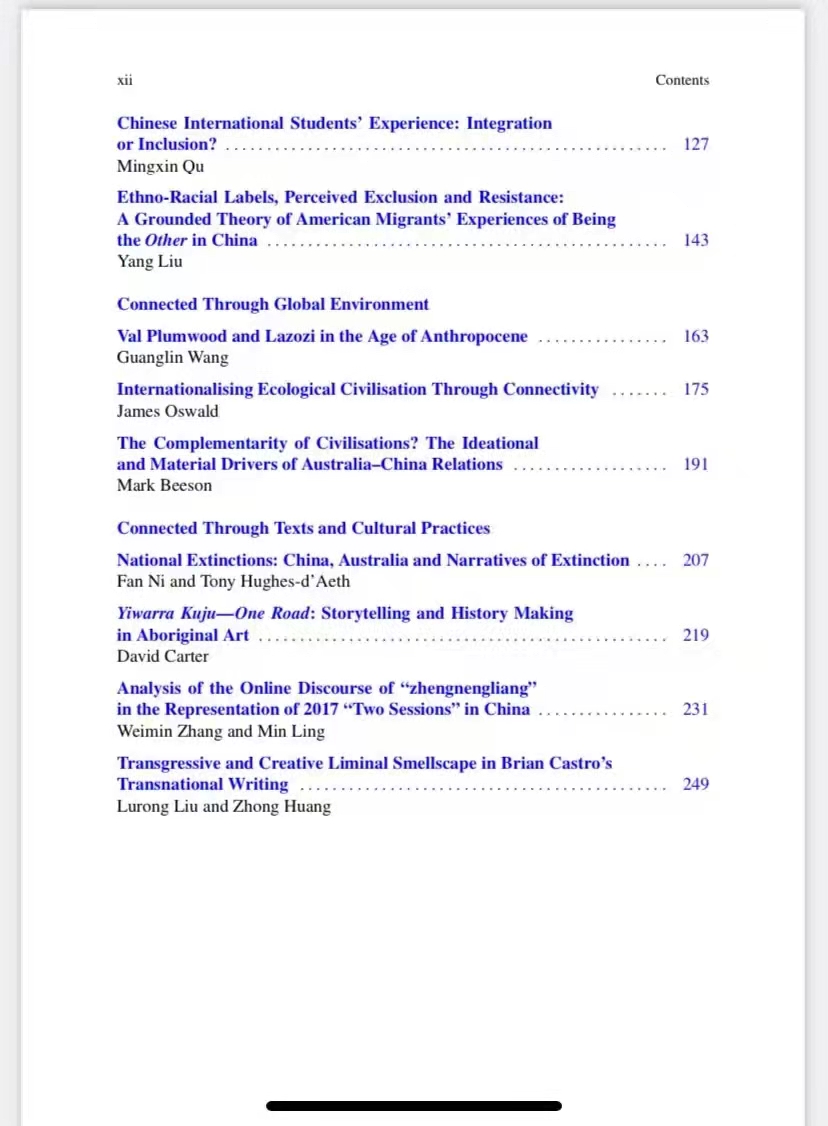 论文集延续了Springer出版社“Encounters between East and West: Intercultural Perspectives”系列的关注点,围绕“Transcultural Connections:Australia and China”(中澳跨文化联系)的主题,集结出版了2019年CATS会议期间的优秀论文及部分特邀稿件,由Greg McCarthy教授、孙有中教授、Xianlin Song副教授主编。yl23455永利集团刘杨博士、胡丹博士与澳研中心研究生文馨供稿。