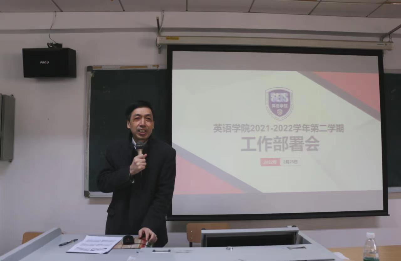 2022年2月25日上午,yl23455永利集团在417教室召开2021-2022学年第二学期工作部署会。会议由英语公司党总支书记王明欣主持,全院教职工参加。