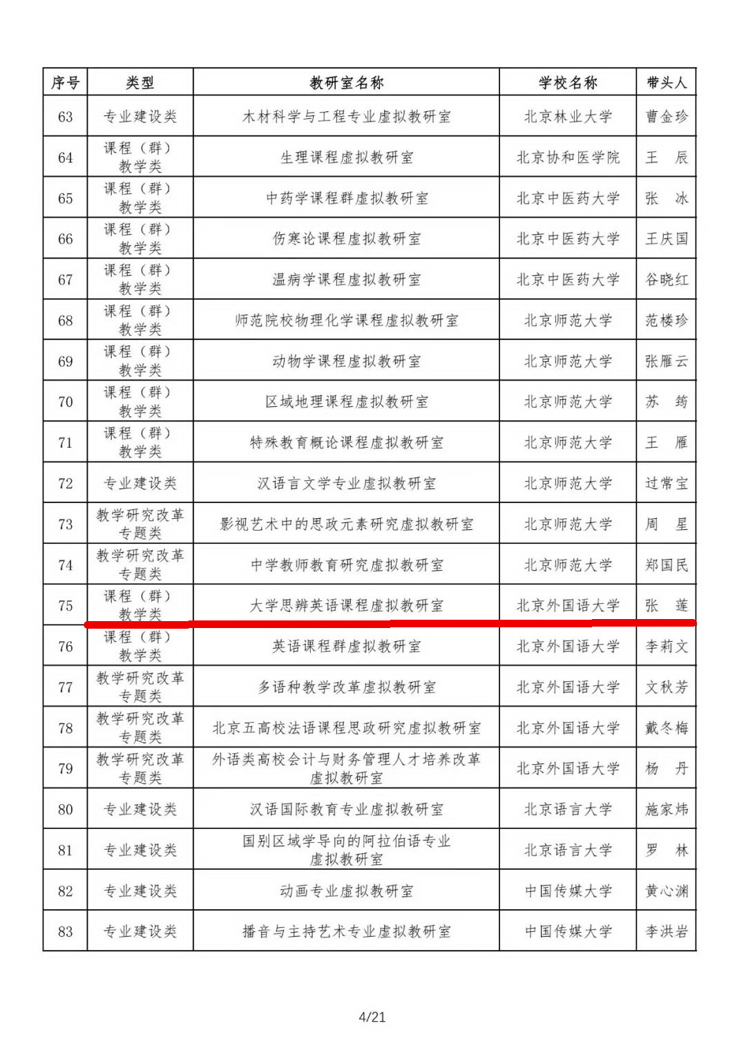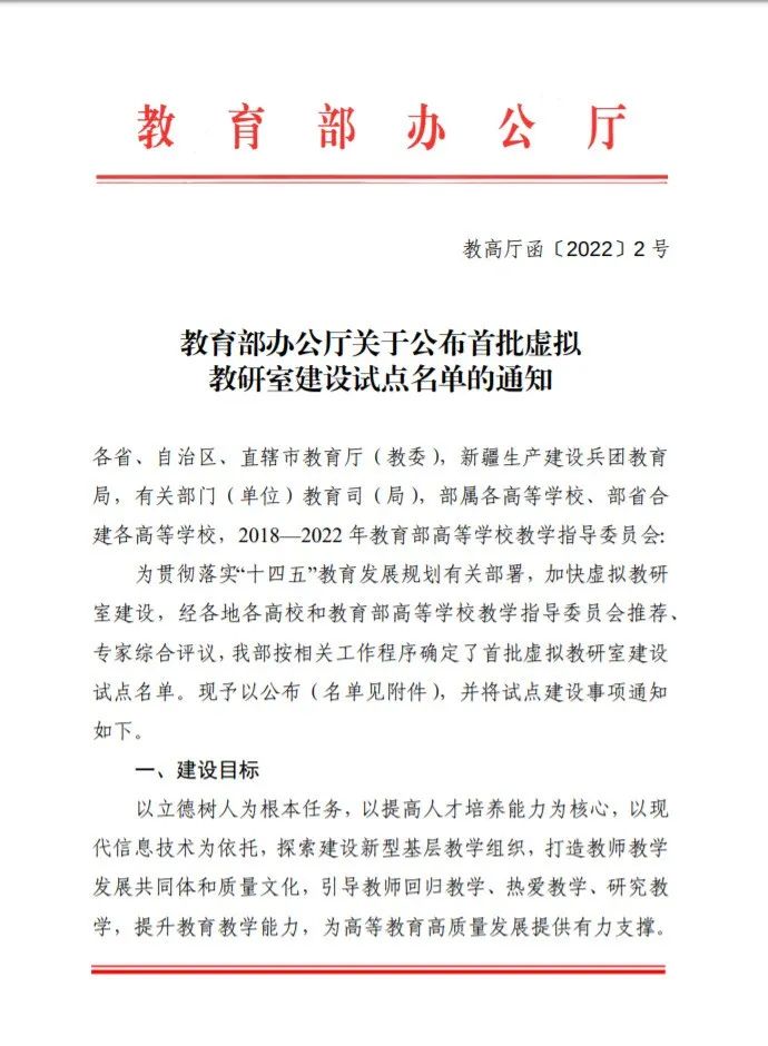 近日,教育部办公厅公布首批虚拟教研室建设试点名单。yl23455永利集团“大学思辨英语课程虚拟教研室”入选。