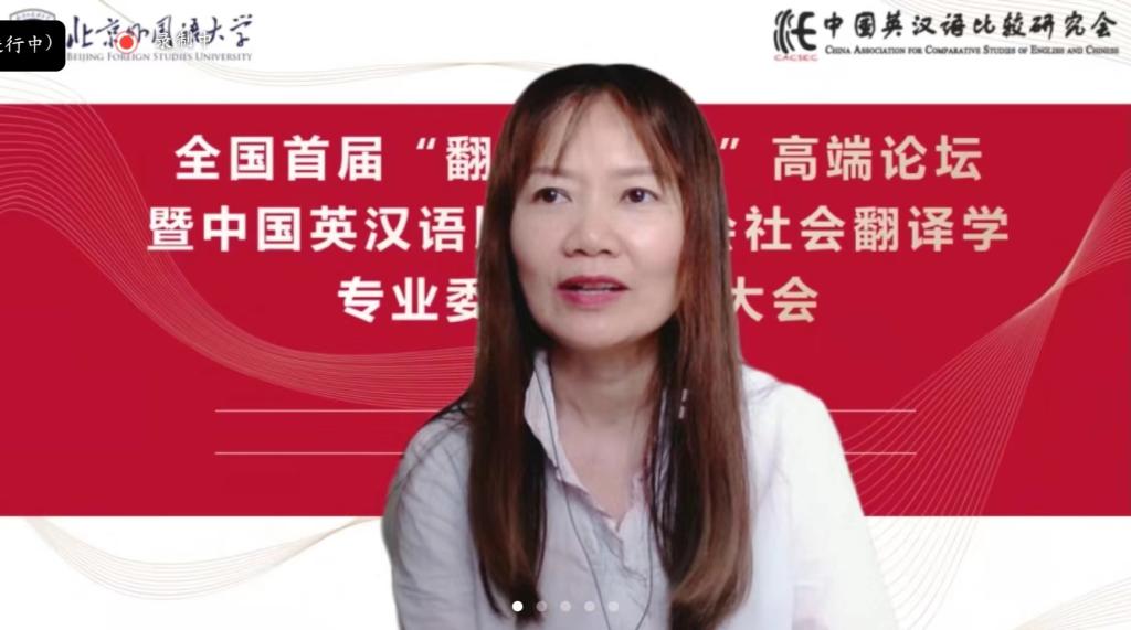 北京外国语大学高级翻译学院经理任文教授主持大会发言