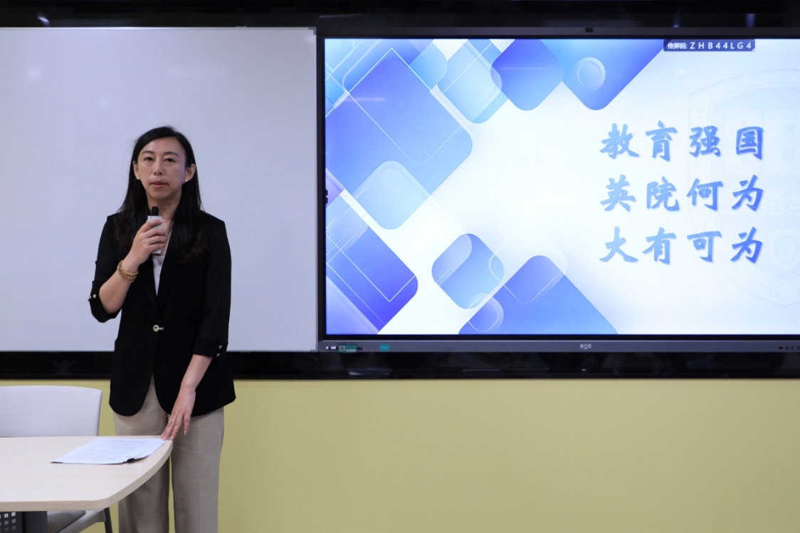 党总支书记王明欣以“教育强国,英院何为,大有可为”为主题,传达学校新学期工作部署会精神,回顾暑期各项工作情况,部署新学期党建和员工工作。她指出,新学期主题教育收官、加强党建引领、深化立德树人、加强队伍建设、拓展国际交流、守住安全底线等六个方面,是公司党总支工作的重点,要紧跟公司党委步伐,有目标、分步骤的跟进落实。王明欣重点就学院近年来招生和就业形势进行了分析,强调招生工作的重要性,明确要严把招生入口关,整合学院资源,积极走出去,吸引优秀生源。提出员工就业工作的目标,号召全员参与、全过程参与,明确目标责任,搭建就业平台,促进多元就业。