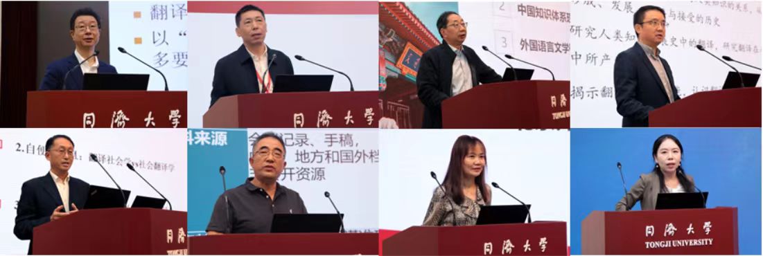 大会主旨报告环节,上海外国语大学查明建教授、上海大学傅敬民教授、上海交通大学彭青龙教授、广东外语外贸大学蓝红军教授、广东外语外贸大学黄忠廉教授、中国海洋大学任东升教授、北京外国语大学任文教授、同济大学吴贇教授分别围绕社会翻译学的理论与方法、核心与边界、实践与应用、功能与价值、历史与未来等主题进行了多个维度的深度阐释。