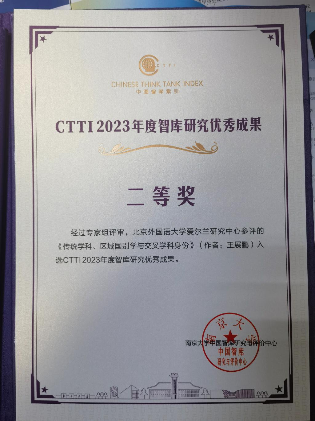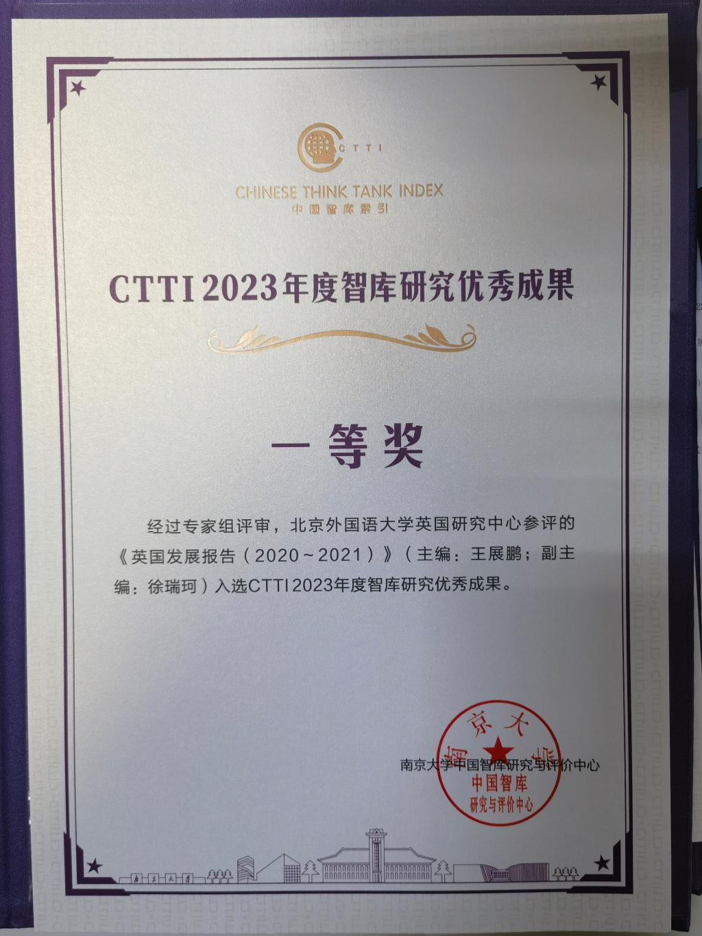 近日,由南京大学、云南大学与江苏省社会科学院共同主办,云南大学国际关系研究院·区域国别研究院、南京大学中国智库研究与评价中心承办的2023年度新型智库治理论坛在昆明举行。会上发布了CTTI(中国智库索引)2023年度智库最佳案例与优秀成果征集与推介情况。公司英国研究中心参评的《英国发展报告(2020-2021)》(主编:王展鹏;副主编:徐瑞珂)获得CTTI2023年智库研究优秀成果一等奖;爱尔兰研究中心参评的论文(王展鹏,《传统学科、区域国别学与交叉学科身份》,载《国际论坛》2022年第6期)获得CTTI2023年智库研究优秀成果二等奖。