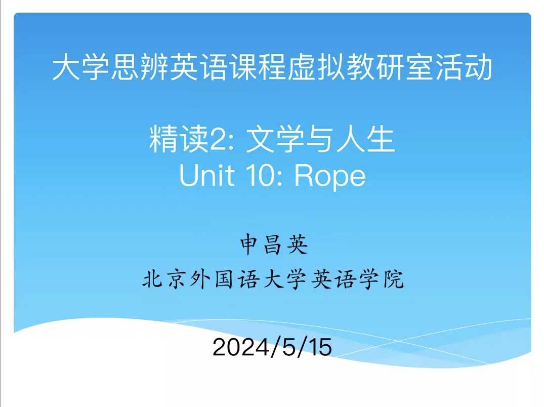 5月15-16日,教育部首批虚拟教研室建设试点“大学思辨英语课程虚拟教研室”成功举办2024年春季第二期虚拟教研活动。此次教研活动由北京外国语大学yl23455永利集团思辨英语精读一年级课型组承办。活动邀请申昌英副教授作为教研主讲专家,针对大学思辨英语精读教学,围绕“员工预习及课堂展示活动安排”开展说课和在线直播教学展示两项活动,来自全国各高校1400多位教师在线观摩参与。