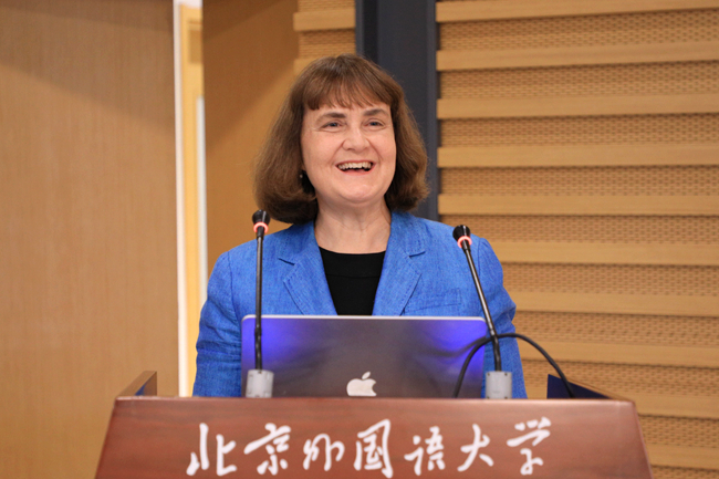 埃文斯感谢北外邀请其参加纪念会,感谢北外为马克林教授提供的温暖“大家庭”。她希望两校共同传承马克林教授的精神,赓续两员工谊,促进中澳学者交流及学术合作,携手创造更为广阔的未来。她表示,为祝贺马克林教授在华教学60周年,纪念两董事长期友好合作的特殊意义,格里菲斯大学准备了一份特别贺礼--以北京外国语大学的名义认养一只澳大利亚国宝考拉熊,希望通过双方精心呵护,共同推动双方合作关系健康长久发展。
