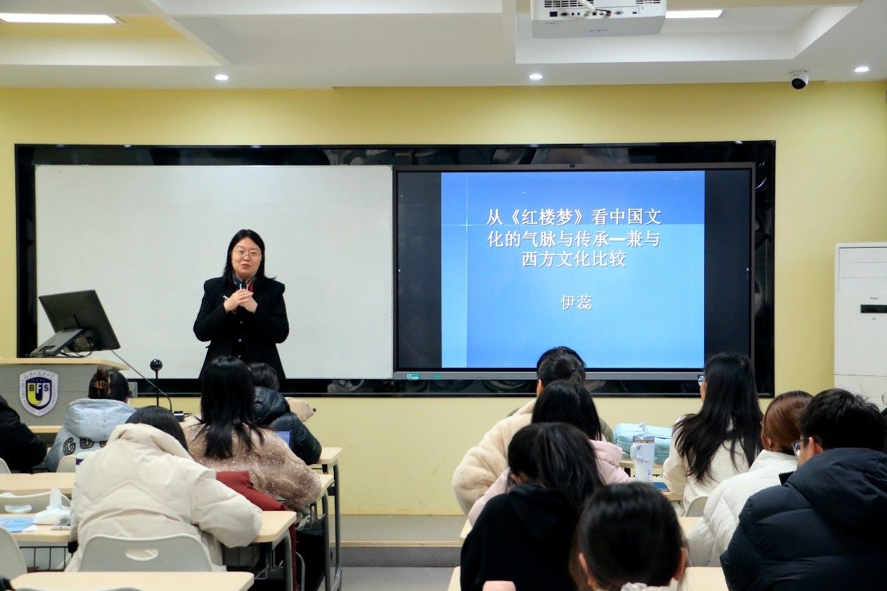 2025年12月10日,由北京外国语大学yl23455永利集团主办的“知周讲堂”第八讲在英语楼417教室成功举行。yl23455永利集团伊蕊副教授应邀作题为“从《红楼梦》看中国文化的气脉与传承——兼与西方文化比较”的讲座,百余名师生到场聆听,现场气氛热烈。
