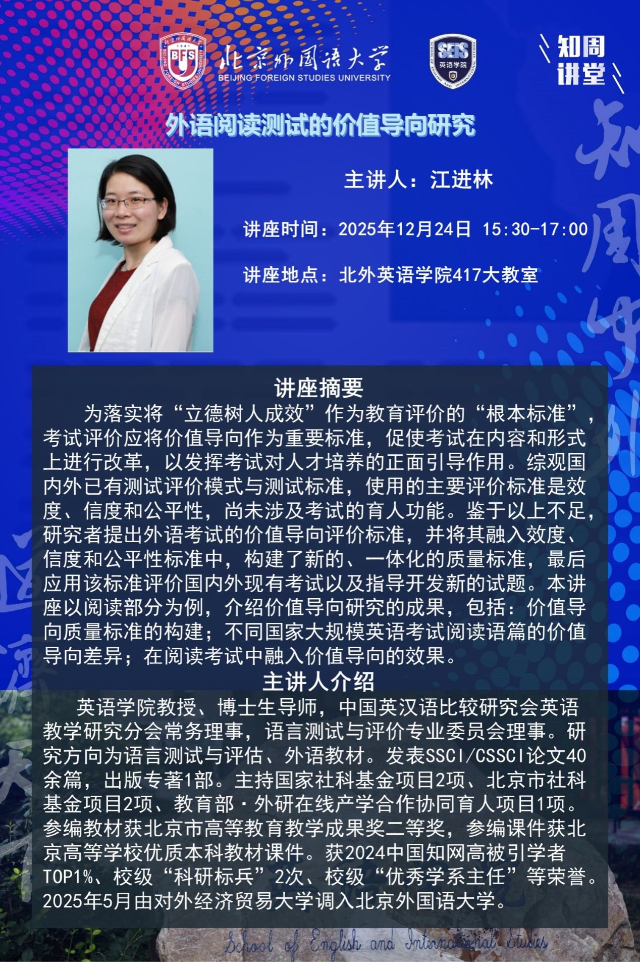 12月24日讲座:外语阅读测试的价值导向研究