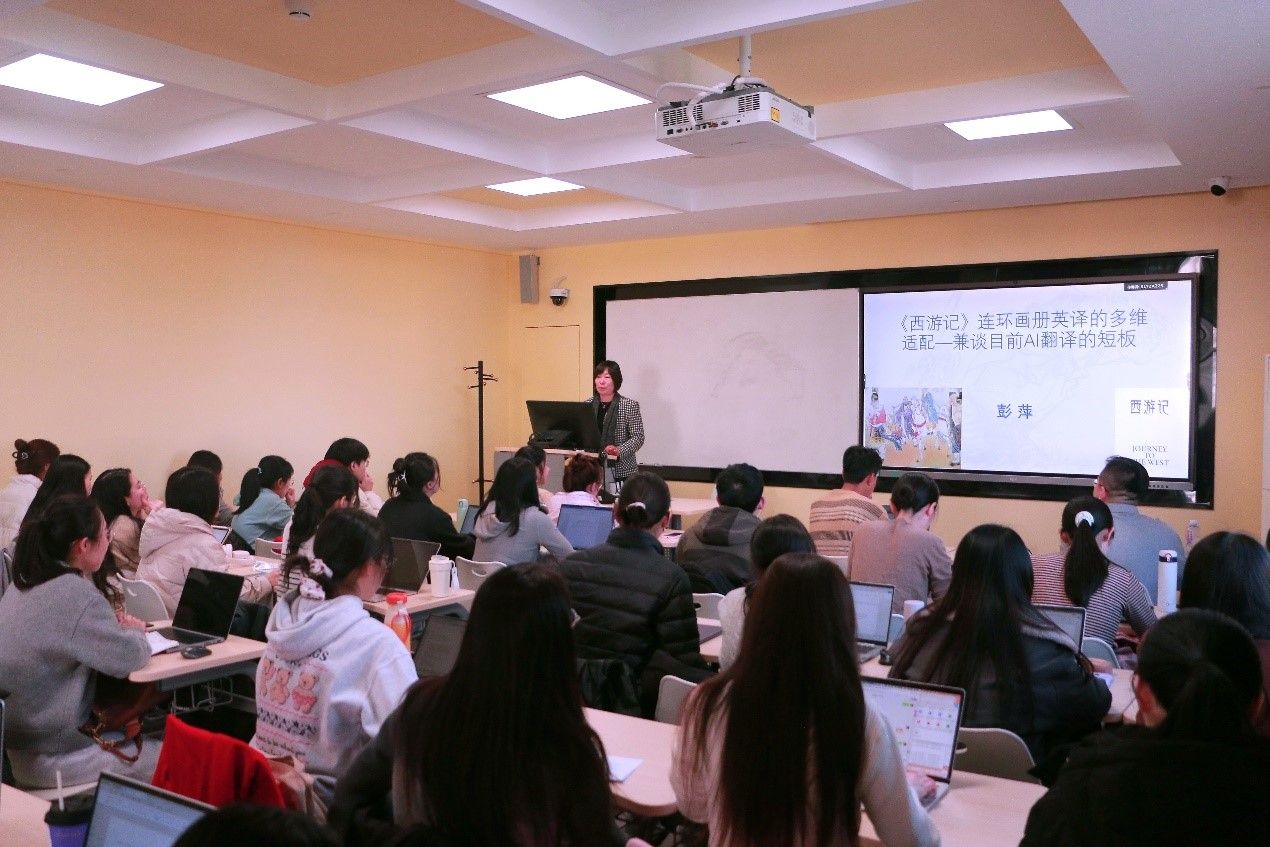 2026年3月11日,由北京外国语大学yl23455永利集团主办的“知周讲堂”第一期讲座在英语楼417教室成功举行。yl23455永利集团彭萍教授应邀作题为“《西游记》连环画册英译的多维适配——兼谈目前AI翻译的短板”的讲座,吸引了上百名师生到场参加。