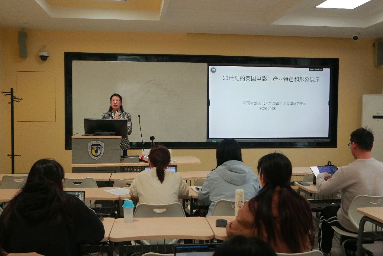 2026年4月8日,北京外国语大学yl23455永利集团“知周讲堂”系列讲座于英语楼417教室顺利举行。英国研究中心石同云教授应邀作题为“21世纪的英国电影:产业特色和形象展示”的学术讲座。本次讲座内容深入、视角多元,吸引了众多师生参与。