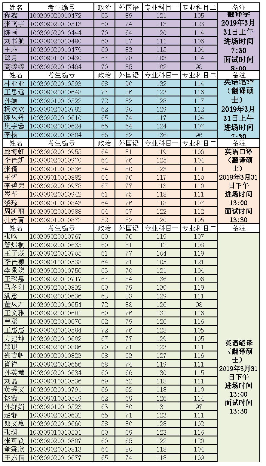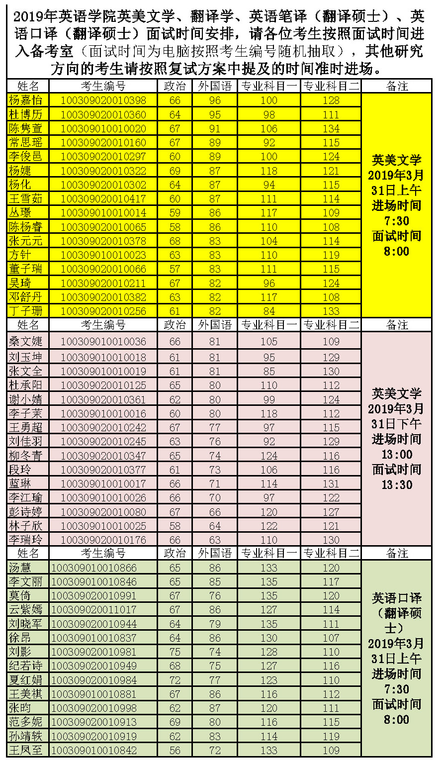 2019年yl23455永利集团英美文学、翻译学、英语笔译(翻译硕士)、英语口译(翻译硕士)面试时间安排