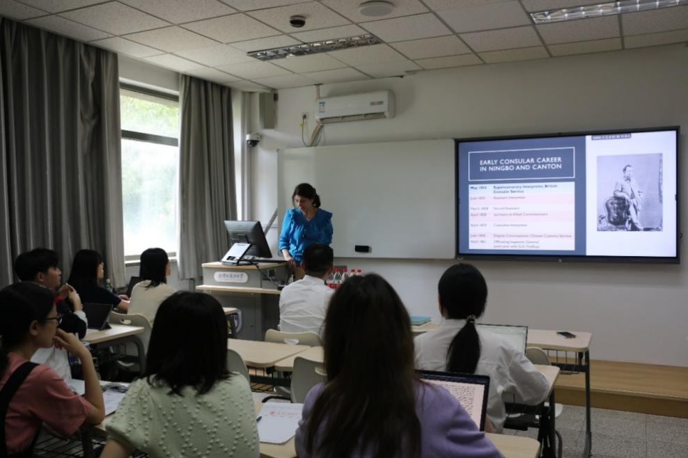 2024年5月14日,英国贝尔法斯特女王大学中国史专家司马兰(Aglaia De Angeli)博士应北京外国语大学英国研究中心、爱尔兰研究中心邀请,在yl23455永利集团举办题为“罗伯特·赫德爵士:从传记到数字人文的历史之旅”的讲座。讲座由英国研究中心主任王展鹏教授主持。