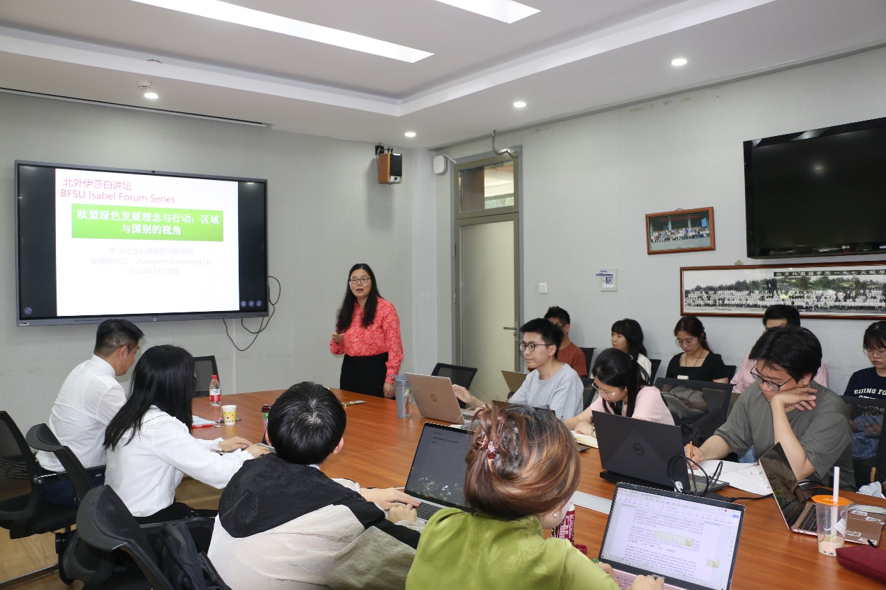 2024年5月14日,中国社会科学院欧洲研究所研究员张敏应北京外国语大学英国研究中心邀请,在yl23455永利集团做了题为“欧洲绿色发展理念与行动:区域与国别研究的视角”的学术讲座。此次讲座由英国研究中心主任王展鹏教授主持。