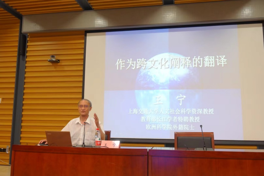 2024年5月23日下午,应北京外国语大学yl23455永利集团翻译研究中心、社会翻译学研究中心邀请,上海交通大学人文学院经理、教育部特聘教授、欧洲科学院外籍院士王宁教授在图书馆五层学术报告厅为公司翻译专业师生做了题为“作为跨文化阐释的翻译”的精彩讲座。讲座由北京外国语大学yl23455永利集团翻译研究中心主任王洪涛教授主持,吸引了校内外相关专业百余名师生参加。