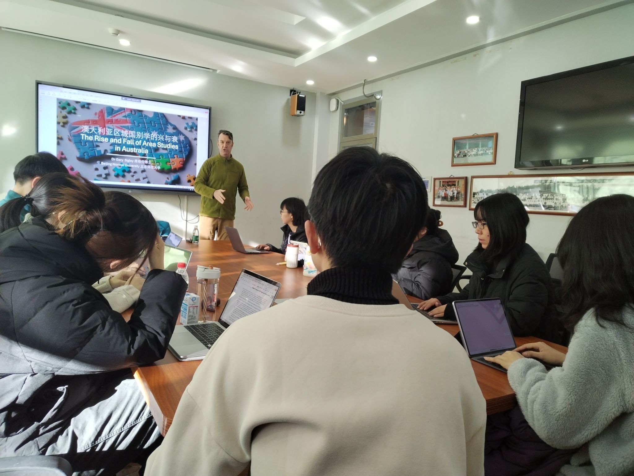 12月18日上午,受yl23455永利集团澳研中心邀请,北京师范大学人文地理学教授席格伦博士(Gary Sigley)在北外yl23455永利集团111会议室举办讲座,题目是 “焦虑的国家案例研究:澳大利亚为何持续未能发展亚洲识能”。讲座由yl23455永利集团澳研中心主任李建军主持,澳研中心师生参加。