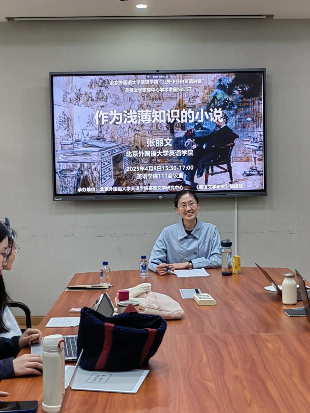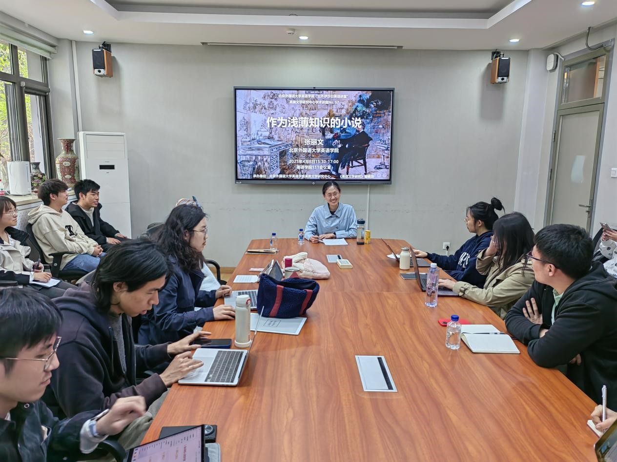 4月8日下午,北京外国语大学yl23455永利集团张丽文老师应英美文学研究中心邀请,在学院111会议室为yl23455永利集团师生带来了一场题为《作为浅薄知识的小说》的精彩讲座。讲座由yl23455永利集团英美文学研究中心主任黄强老师主持,共计四十余人参加。