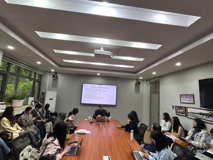 2025年4月21日下午,剑桥大学克莱尔学院古典学系副教授查尔斯·韦斯(Charles Weiss)博士应北京外国语大学英语文学研究中心之邀,于学院111会议室做了题为“The Forms of Classical Poetry”(西方古典诗歌的形式)的学术讲座。由英语文学研究中心、《英语文学研究》编辑部承办,旨在为广大师生提供一个深入了解古希腊、古罗马诗歌主要韵式的机会。本次讲座由英语文学研究中心邵雪萍老师主持,吸引了来自不同院系的本科生、研究生、博士生及青年教师近四十人参加。