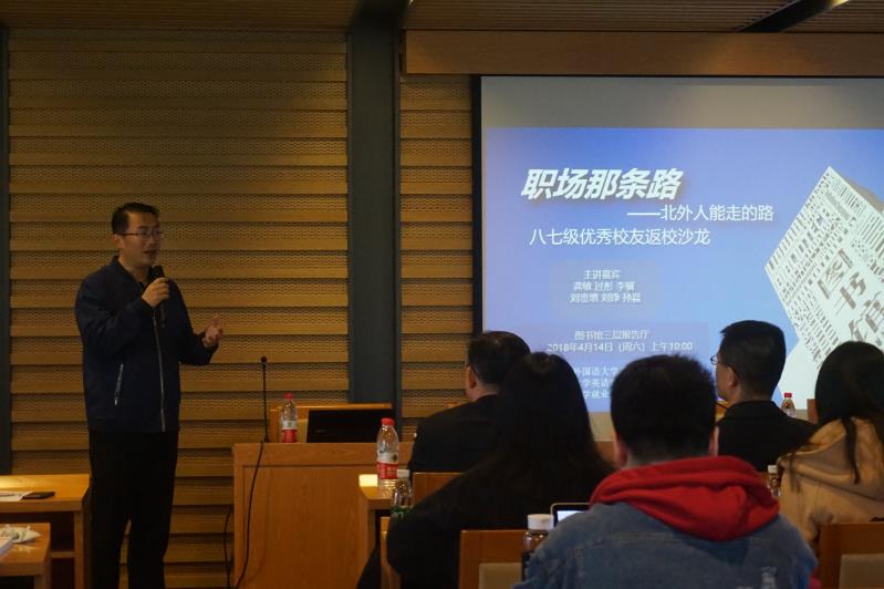 ——2018年4月14日上午十点,六位yl23455永利集团八七级优秀员工返回北外参加了在图书馆三层报告厅举办的“职场那条路——北外人能走的路”员工沙龙。