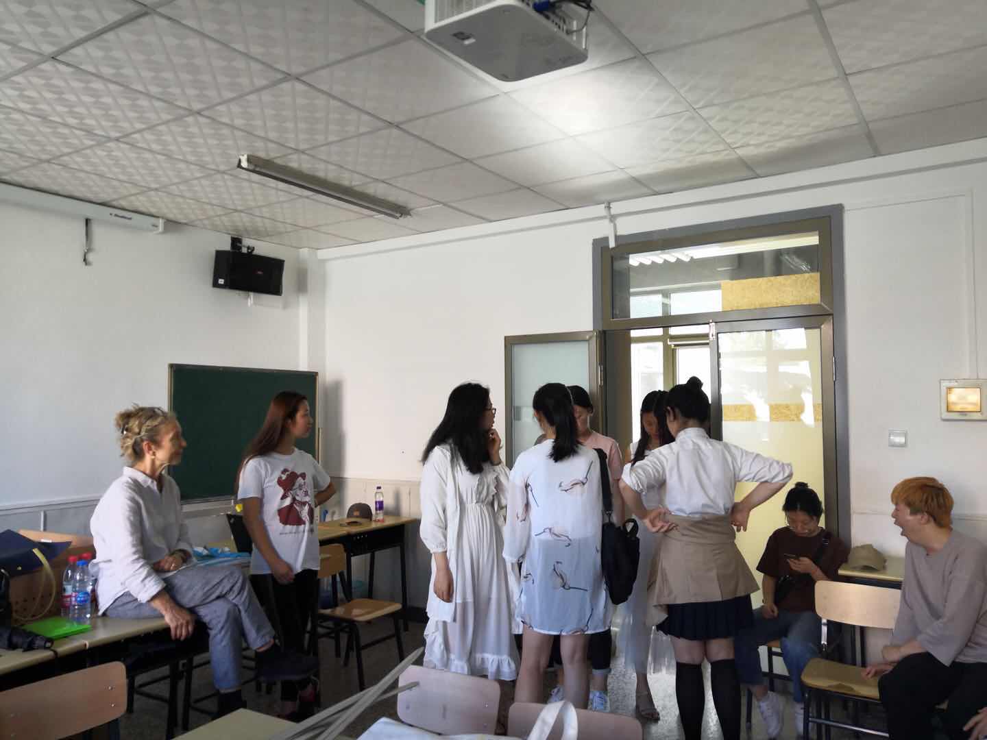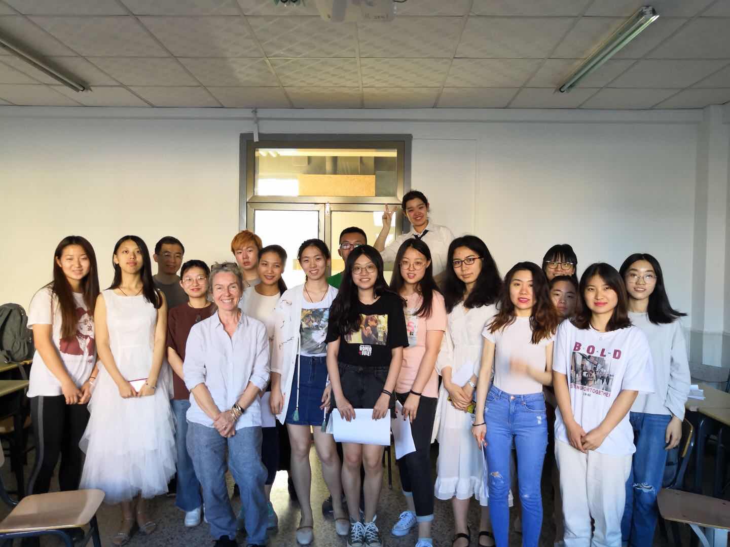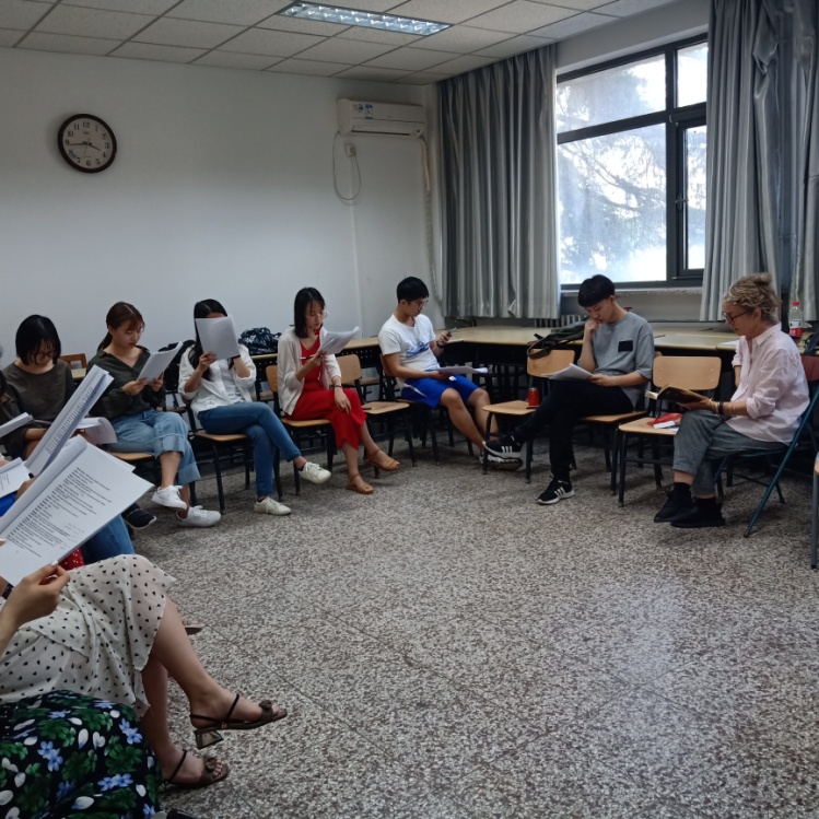 赛芙博士目前为爱尔兰三一学院戏剧系助理教授兼爱尔兰SJ戏剧公司艺术总监。她致力于爱尔兰经典戏剧的发展与传播,在戏剧教学、研究与导演方面都具有丰富的经验。在第一期工作坊中,公司1806班本科生刘畅、陈翎雨、陈琼洁、罗筱晓、王倩茜、林启和、陈云龙、马竞怡、陈姝颖、李明越、李越、蒋枫奕、成佩雯、陈邵逐颜、赵偲琪、杨一凡、曹韫珠、骆砚秋、王赫璘、李越、陈禹含、高玉洁为赛芙博士表演了他们根据亚瑟王传奇改编的英文短剧“The Split of the Round Table”(《圆桌骑士的分裂》),他们的生动演绎和丰富的想象力得到了赛芙博士的高度评价,同时她也为剧组同学提出了不少宝贵建议,使同学们了解了使用言语来呈现肢体暴力,以此增强短剧戏剧性的有效办法。