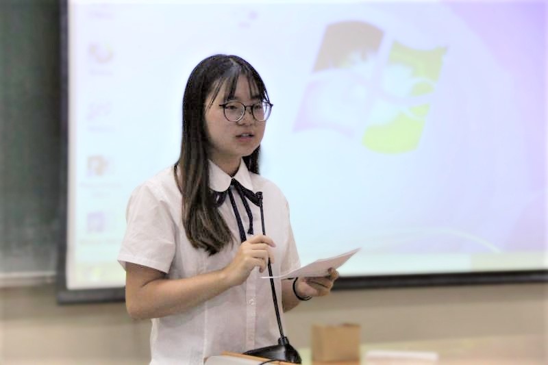 宣讲团成员叶纹笑宇同学讲话