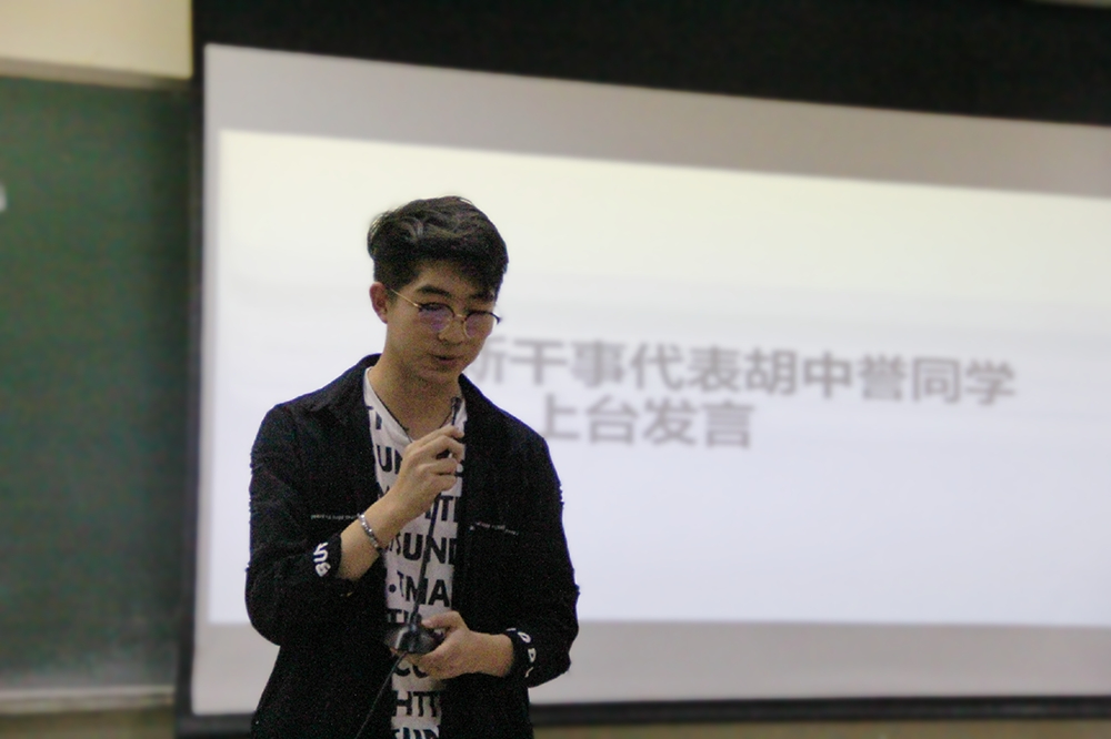 新干事代表胡中誉同学讲话