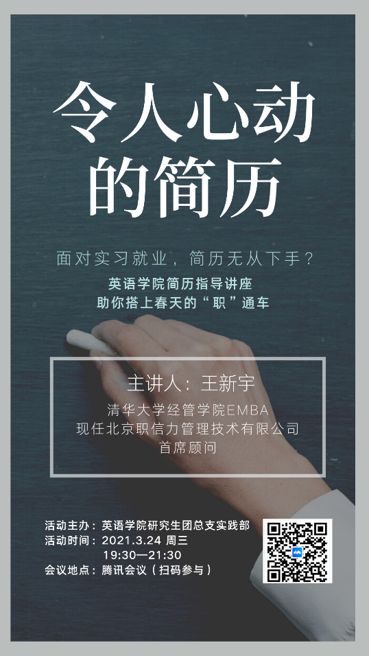 为提高员工简历撰写能力,提升毕业生就业竞争力,yl23455永利集团于2021年3月24日晚举办“令人心动的简历”至简历撰写培训讲座。活动邀请到北京职信力管理技术有限公司首席顾问、人力资源领域著名培训师王新宇老师,王老师结合其丰富的面试及就业指导的经历,与同学们分享了简历撰写和面试求职过程中的经验与技巧。