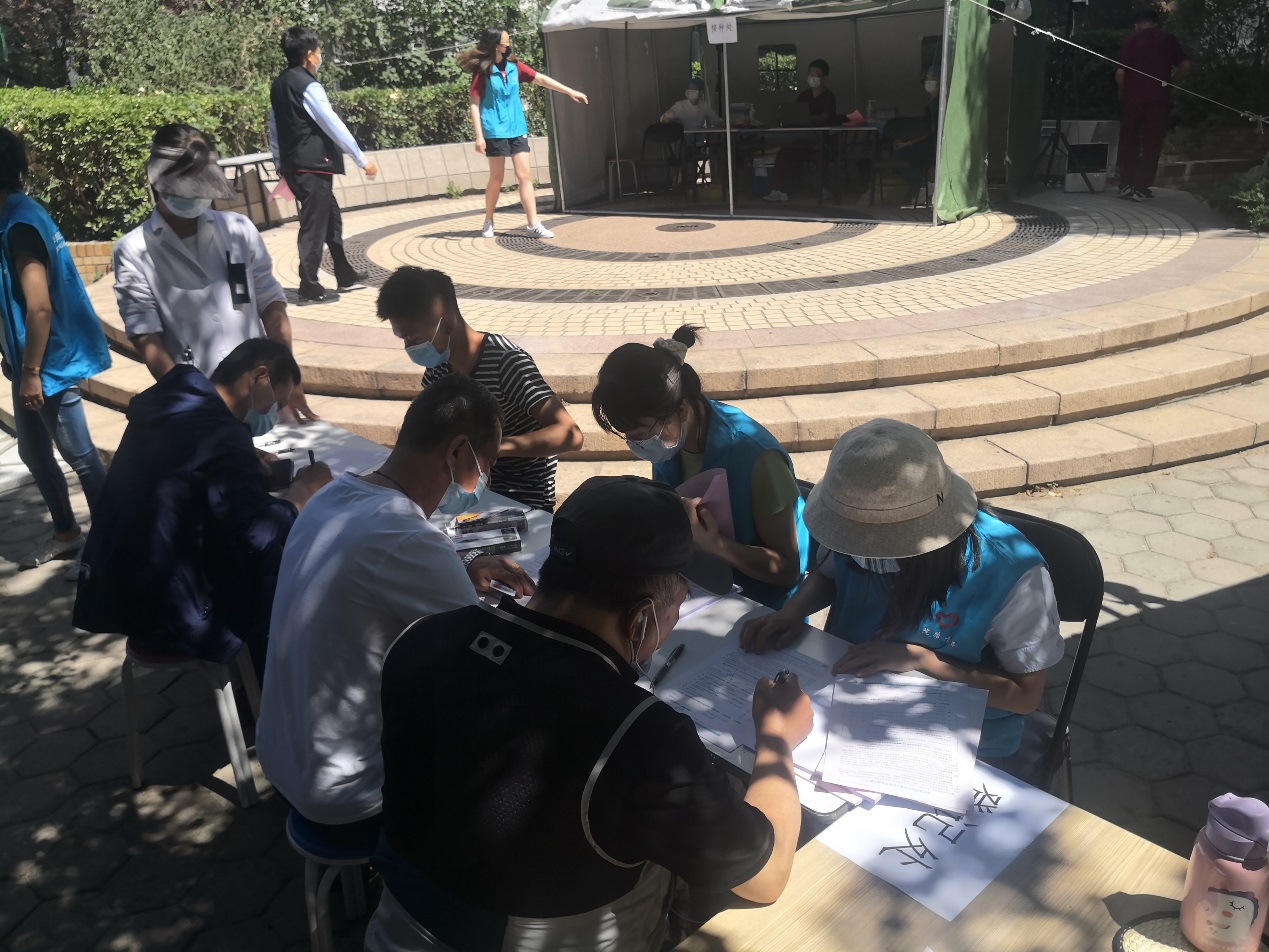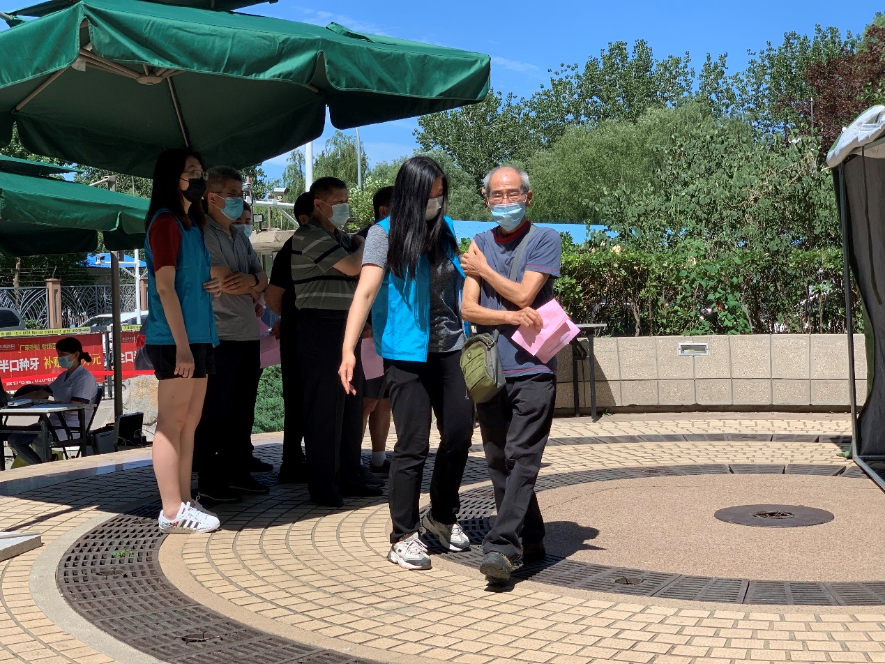尽管烈日炎炎,热浪袭人,同志们仍然坚守在自己的工作岗位上,协助医务人员与学知园社区工作人员,圆满地完成了疫苗接种任务。学知园社区居委会工作人员对于前来参与志愿服务的同志们表示了真诚的感谢。