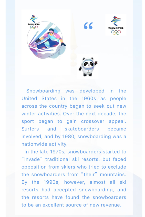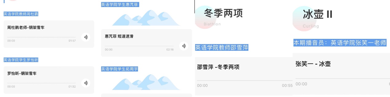 为增进同学们对于冬奥会的了解,激发大家参与冬季运动的热情,yl23455永利集团组织开展“英院冬奥FM”的系列语音分享活动。该活动通过每周发布数条2-3分钟的语音,对冬奥比赛项目进行相关科普。本次语音分享活动面向全院师生征稿,采用中英双语对比赛项目进行介绍。每期稿件虽简短但富有内涵,力图以较短的篇幅尽可能呈现最多的知识,让听众能够在较短的时间内对一项运动有初步的了解并激发其深入了解的兴趣。FM系列活动充分体现全院师生对冬奥的参与热情与学院特色,让师生们与心灵相约,与健康同行,以运动之名,行青春之实。