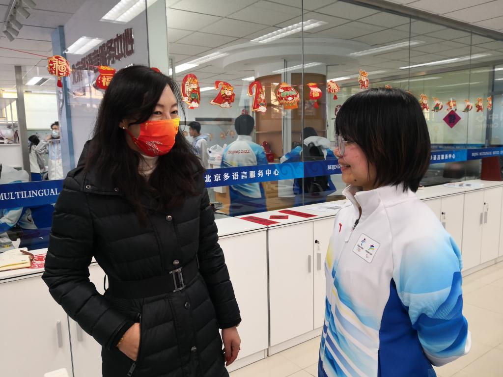大年初五,王明欣看望了节日期间仍坚守在多语言服务中心工作岗位上的志愿者。王展鹏作为志愿者闭环外指导教师,同时也负责联系冬奥实习生,除了关注员工们志愿服务的相关情况,也为员工返校后的住宿、学习等不断进行沟通协调。彭萍为在九华驻地冬奥志愿者部的同学录制新年祝福视频。