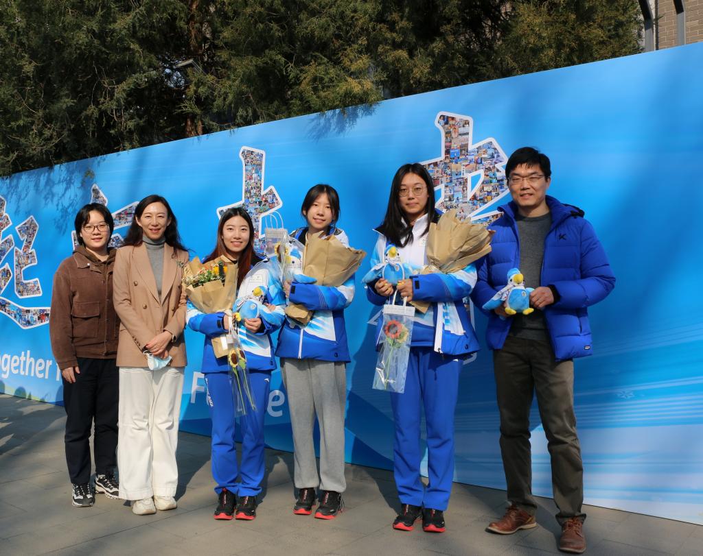 第一批返校的三位志愿者分别是2011级硕士生董蒙初、刘士楠,2019级本科生刘佳艺,他们分别在首钢滑雪大跳台担任体育展示助理,对接外籍工作人员,整理、传达各类信息资料,协助他们顺利开展工作。目前三位同学已结束14+7隔离,身体状况良好。