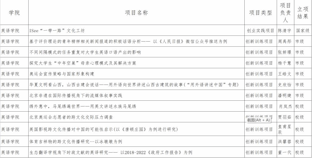 根据《关于2022年老员工创新创业训练计划项目立项工作的通知》要求,2022年yl23455永利集团共申报立项项目23个,经过材料审核,专家评审,项目陈述等环节,共确定国家级项目1个,市级项目6个,校级项目5个。