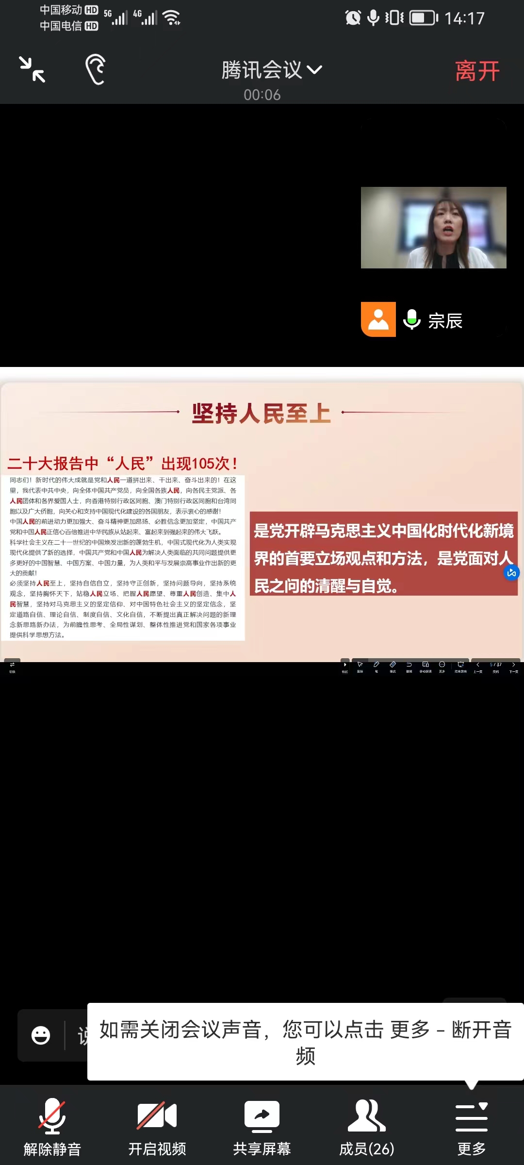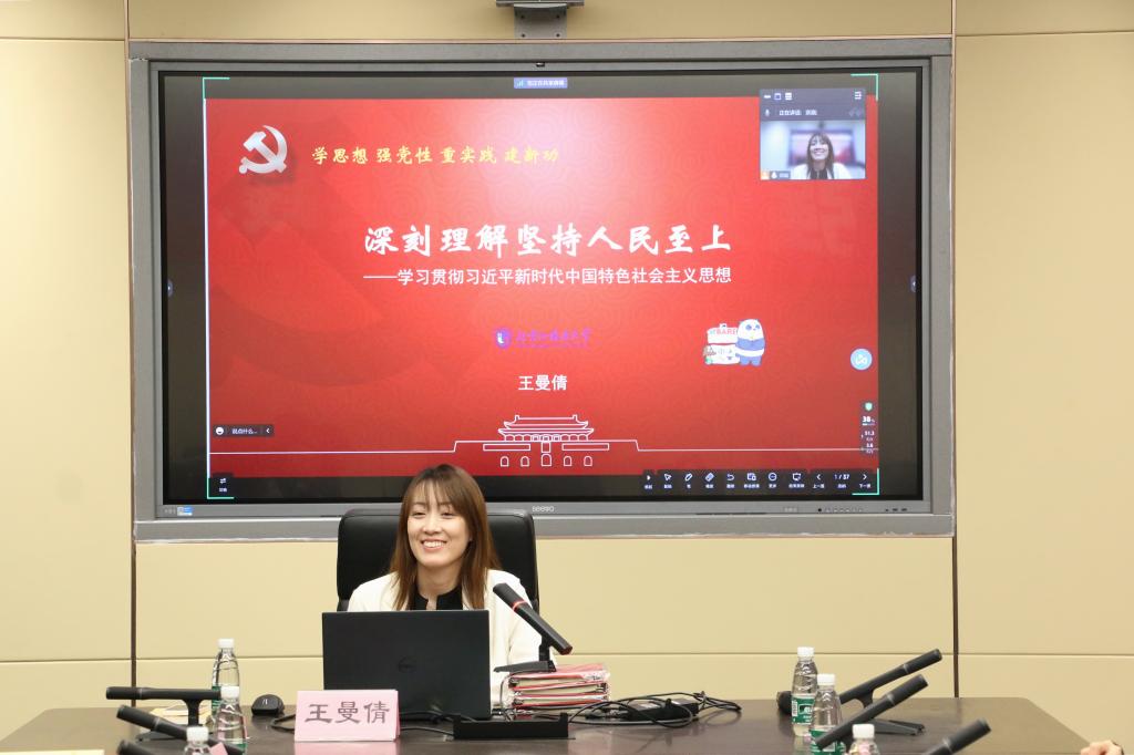 读书班分为专家领读和自学两个部分,马克思主义学院副经理王曼倩副教授受邀作为领读专家,以“深刻理解必须坚持人民至上”为主题讲述专题党课。王曼倩围绕党的二十大报告,从理论、历史、成果三个逻辑层次,深入浅出地讲述了中国共产党坚持人民至上思想的发展脉络和重大成就。她指出坚持人民至上是党开辟马克思主义中国化时代化新境界的首要立场观点和方法,是党面对人民之问的清醒与自觉。她聚焦“马克思主义的本质要求”、“党百年奋斗的初心使命”、“新时代巨大成就的力量之源”、“全面建设社会主义现代化国家的最大底气”四个方面,深刻阐释了什么是人民至上,为什么坚持人民至上以及如何坚持人民至上。
