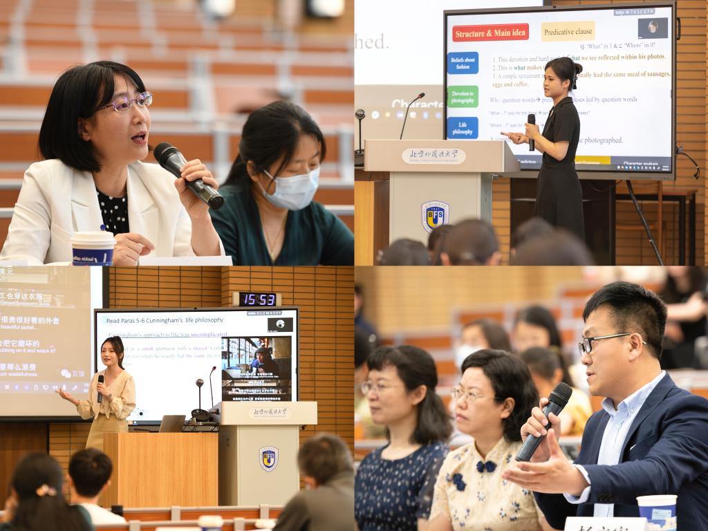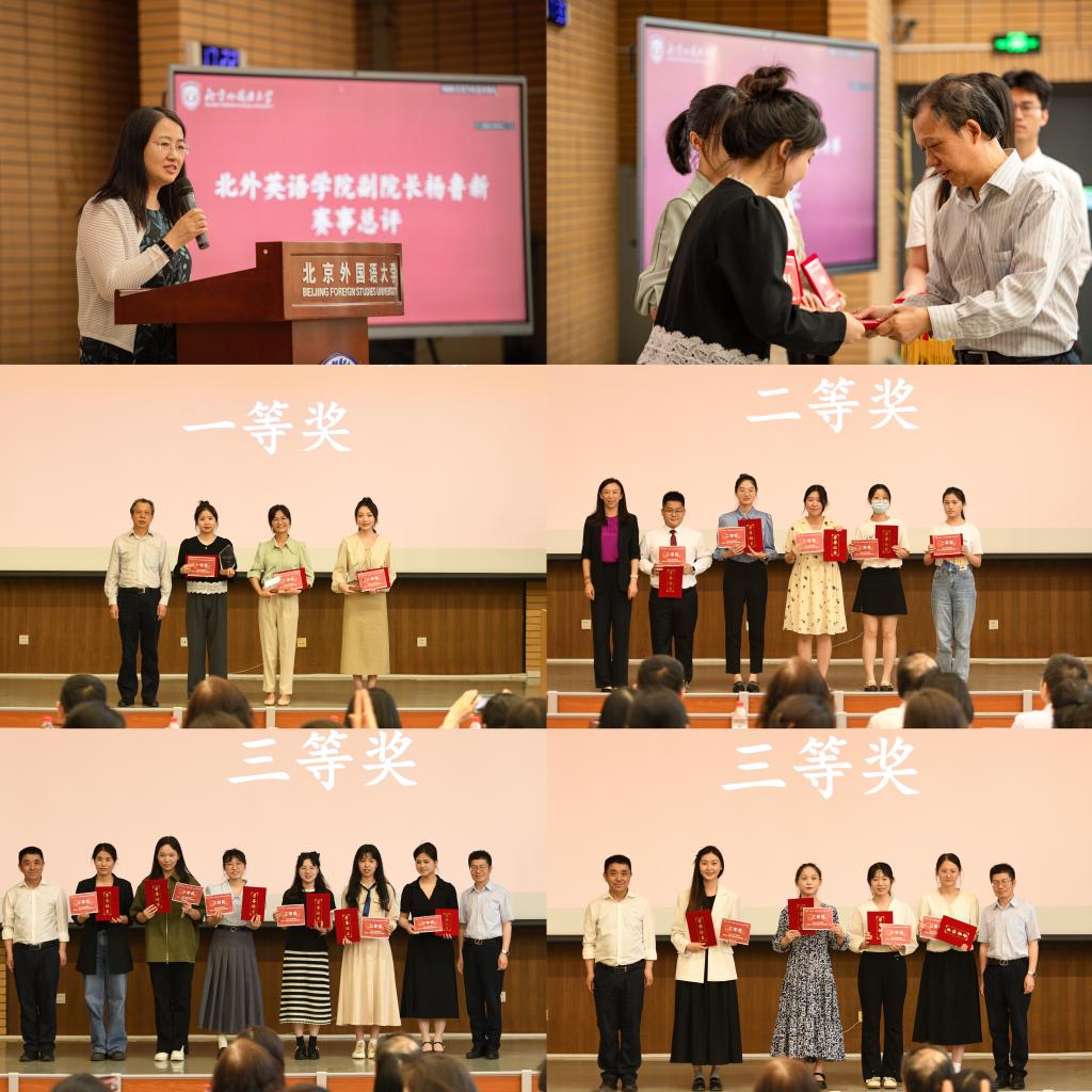 决赛当天,来自全国11所高校的16名选手齐聚北外,2名选手通过线上展示参与比赛,分为三个会场同时进行。经过课型设计讲解、模拟授课试讲与现场问答等环节的激烈角逐,3名优秀选手荣获决赛一等奖,5名选手荣获决赛二等奖,10名选手荣获三等奖。